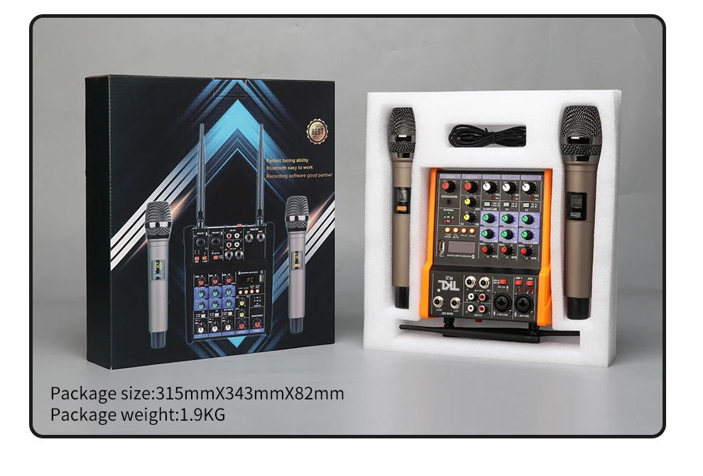 TKL 4-канальный аудиомикшер с УВЧ микрофоном, звуковой миксер REC Bluetooth USB Запись 48 В, фантомное питание, DJ микшер