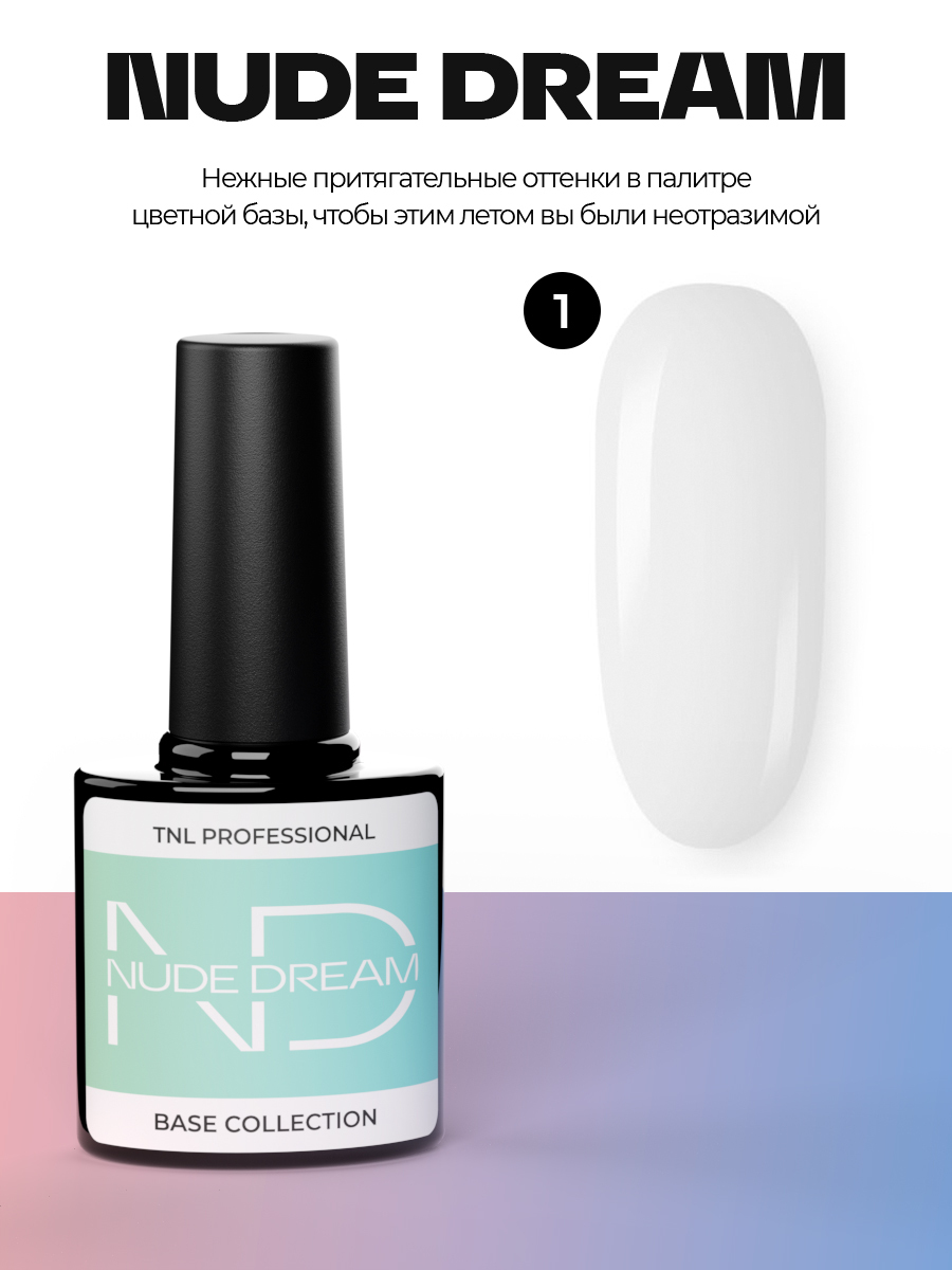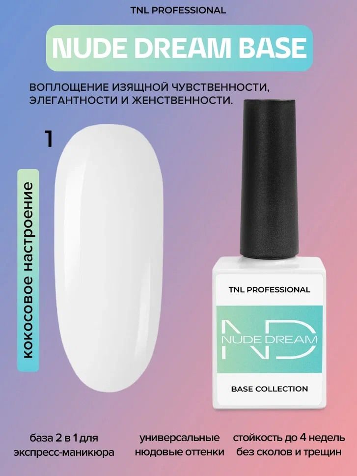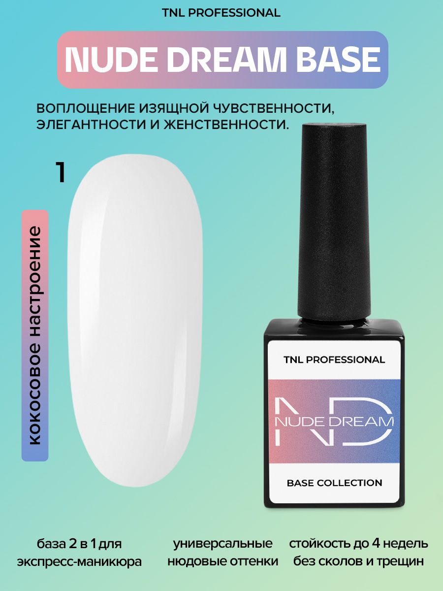 TNL Цветная база для гель лака Nude dream base №01 - кокосовое настроение (молочная камуфлирующая) камуфляжная основа 2 в 1 для ногтей , 10 мл