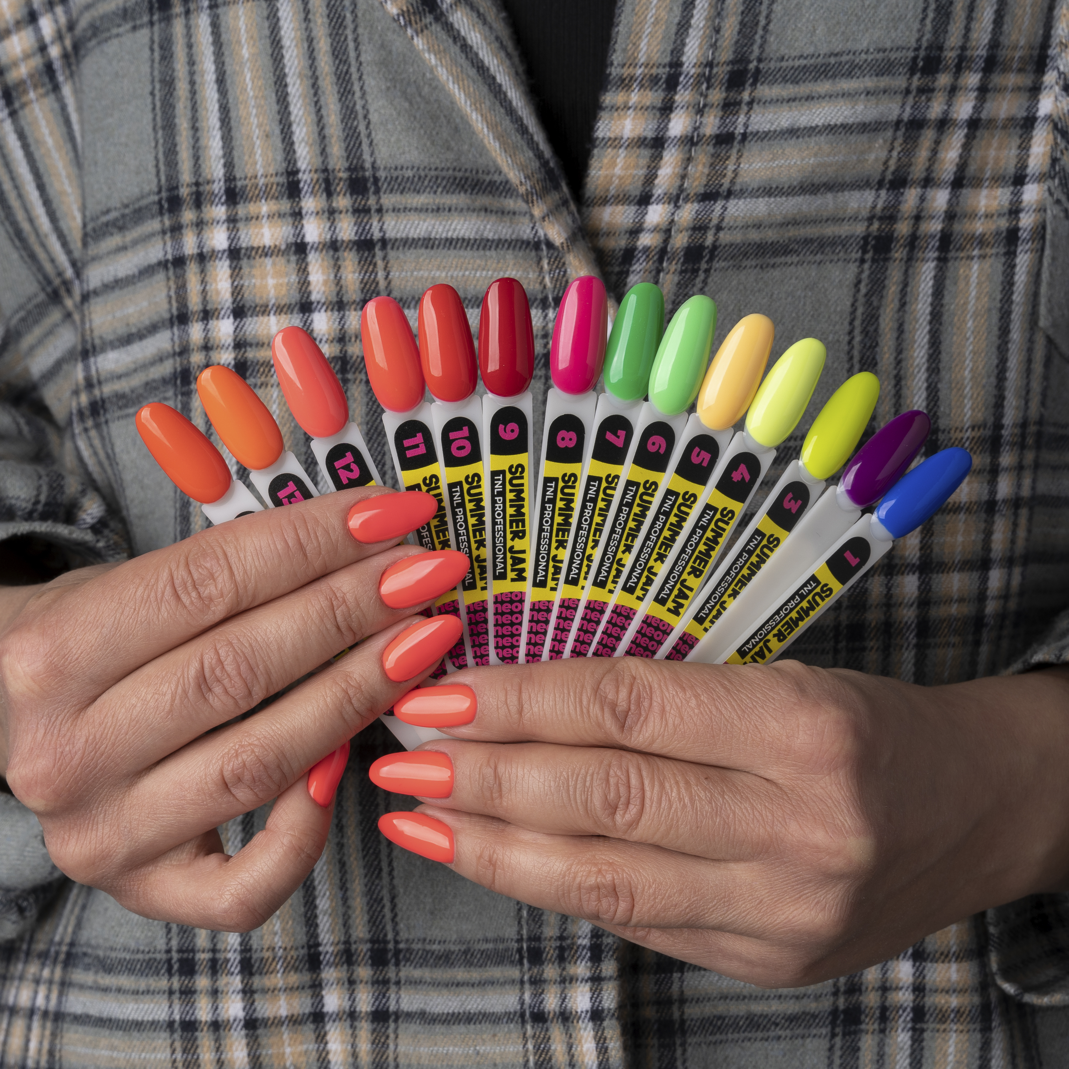 Яркие цветные гель-лаки TNL Neon Summer Jam в неоновом исполнении мгновенно поднимают настроение своей яркостью и насыщенностью.