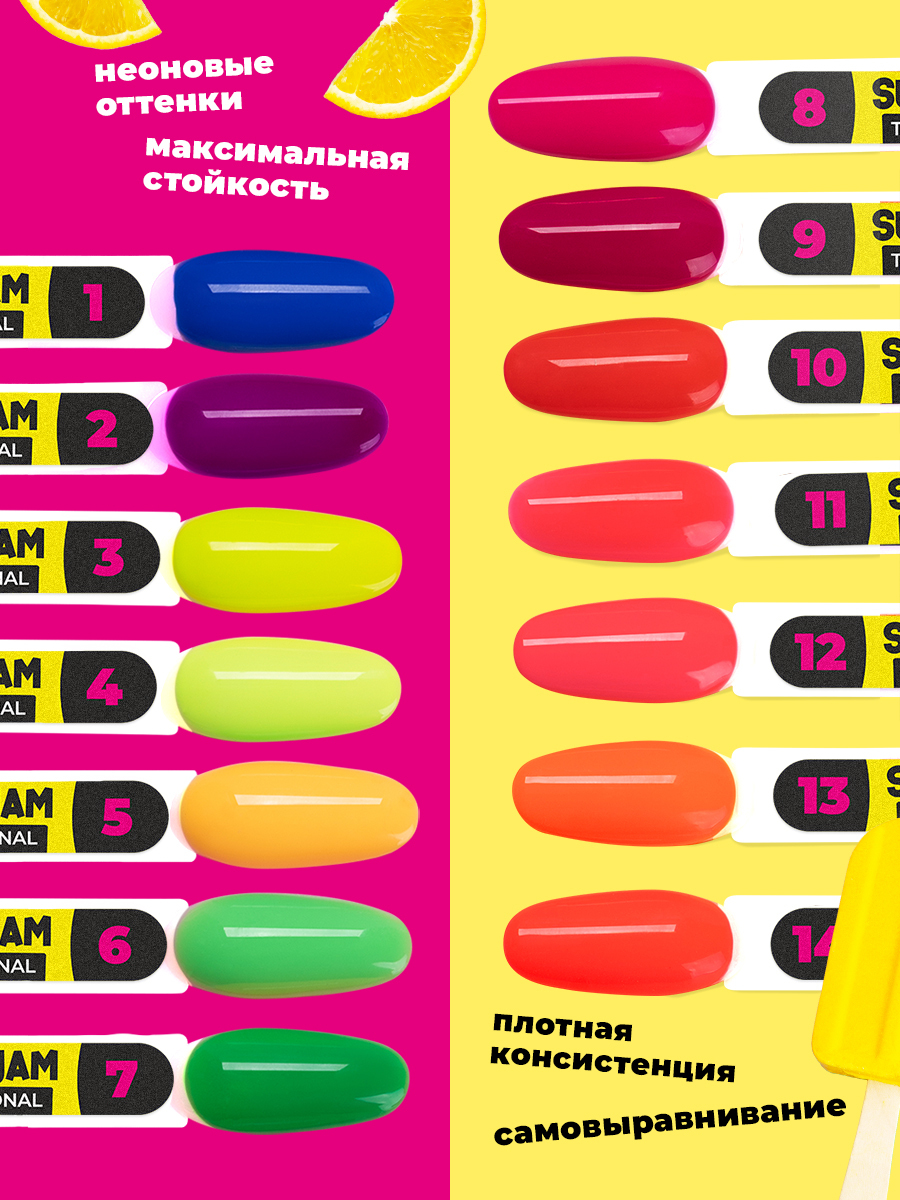 Вашему вниманию — обновленная коллекция гель-лаков для ногтей Neon Summer Jam от TNL Professional! Мы собрали вместе самые насыщенные фруктовые оттенки, чтобы вы смогли ощутить теплоту летних дней на кончиках своих ногтей. Гель-лаки с плотной консистенцией и эффектом самовыравнивания сохраняют стойкость цвета и непревзойденное качество покрытия до 4 недель.