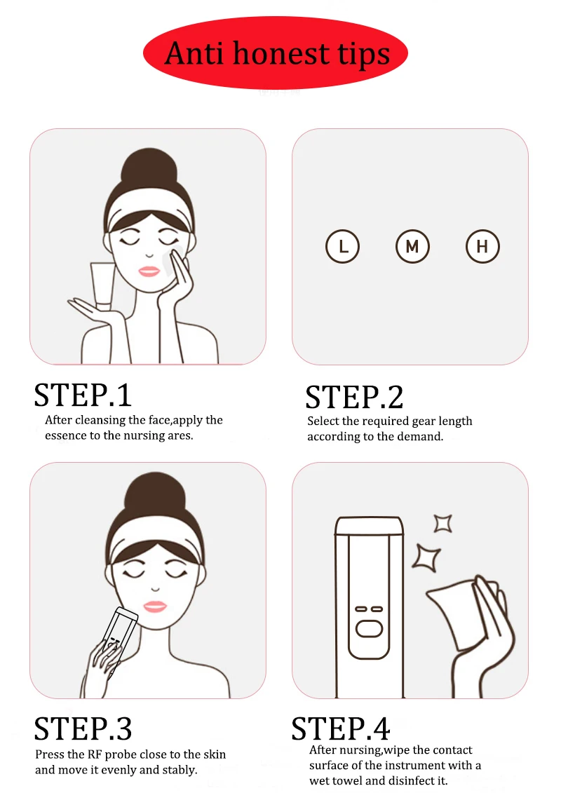 05. Настоящие продукты RF и heat lift не должны быть использованы для повреждения кожи каким-либо образом после использования. Охлаждение, особенно, не холодный компресс, должно дать коже Остыть естественным образом;