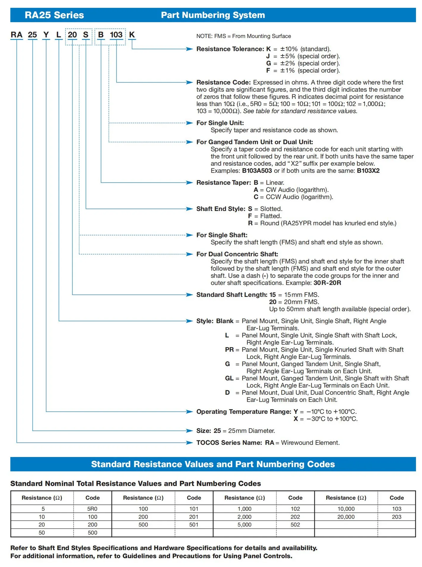 TOCOS RA25Y20SB103 RA25Y20SB502 RA25Y20FB103 RA25Y20SB202 RA25Y20SB102 RA25Y20SB501 500R1K10K2K5K 1-поворотный проволочный потенциометр