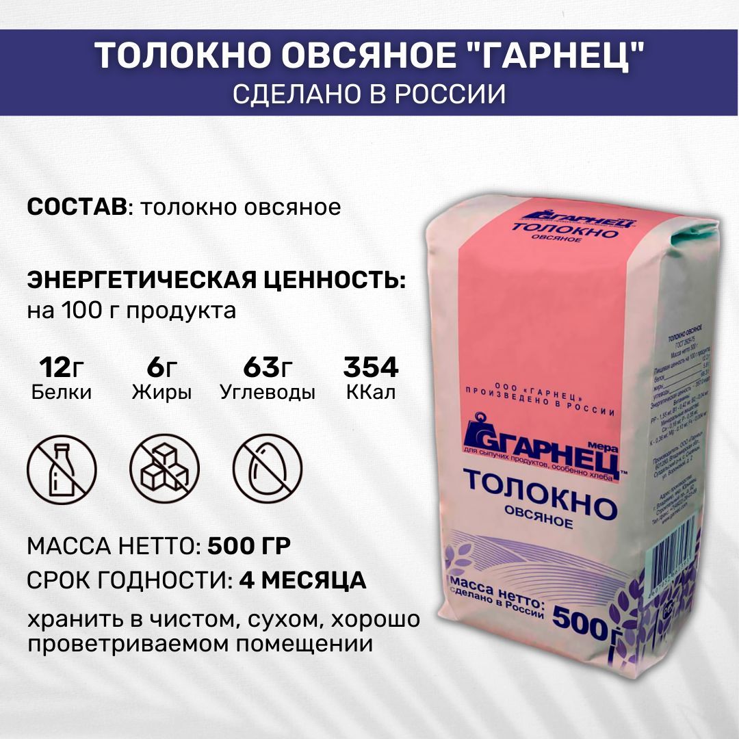 Толокно Гарнец Garnec овсяное 3 шт по 500г