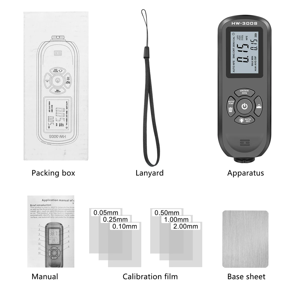 Объект измерения:Тестер используется для неразрушающего измерения толщины покрытия и краски, быстро и точно. Он в основном используется для измерения толщины непроводящего покрытия на поверхности металла, а также толщины неферромагнитного покрытия на ферромагнитном металле (таком как железо, никель, кобальт, и т. д.), такие как толщина краски на поверхности автомобиля, толщина покрытия металлических деталей и так далее.