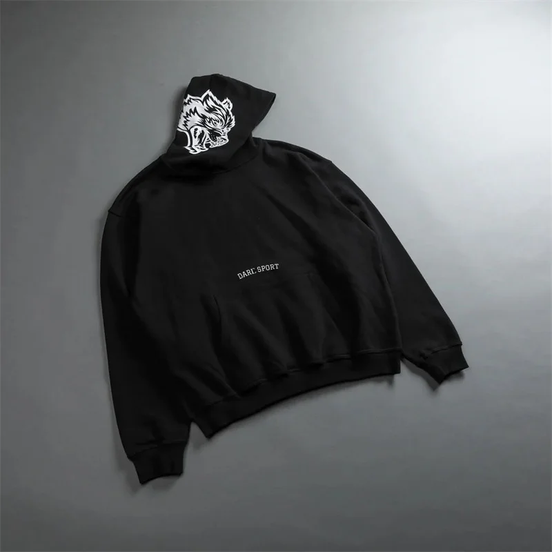 Толстовка DARC Мужская Флисовая с капюшоном и принтом волка, спортивная классическая толстовка в стиле хип-хоп, Классический пуловер оверсайз из бархатной ткани, 2023