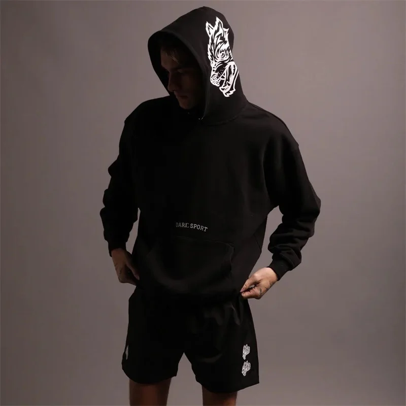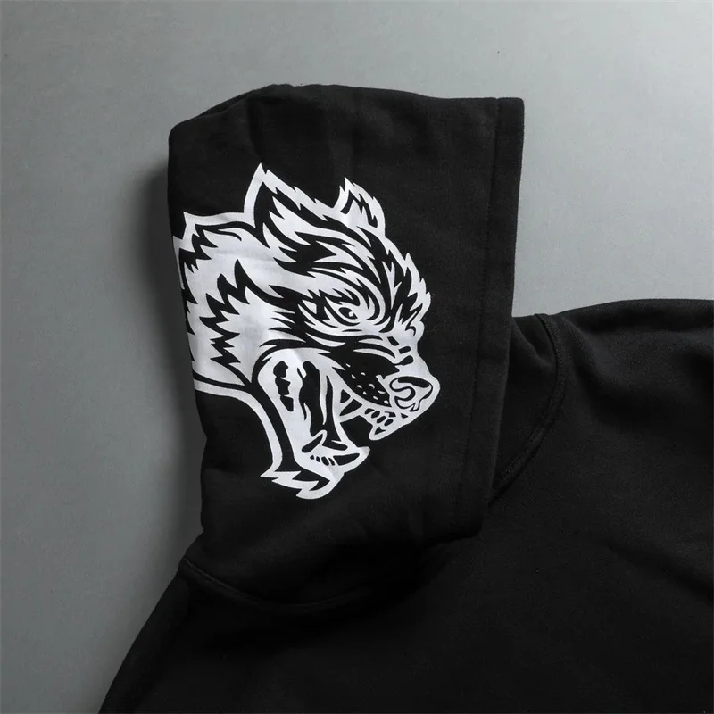 Толстовка DARC Мужская Флисовая с капюшоном и принтом волка, спортивная классическая толстовка в стиле хип-хоп, Классический пуловер оверсайз из бархатной ткани, 2023