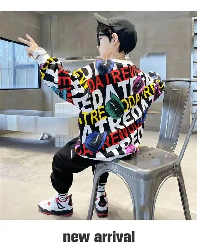 Толстовки с капюшоном для мальчиков, свитшоты, хлопковые топы, верхняя одежда, весна-осень 2023, детская одежда высокого качества