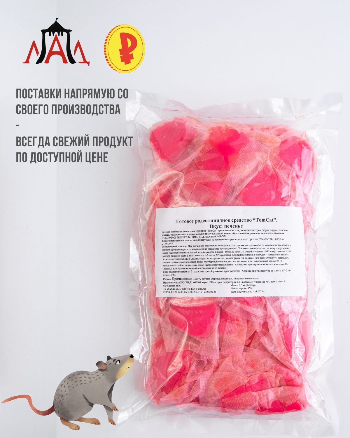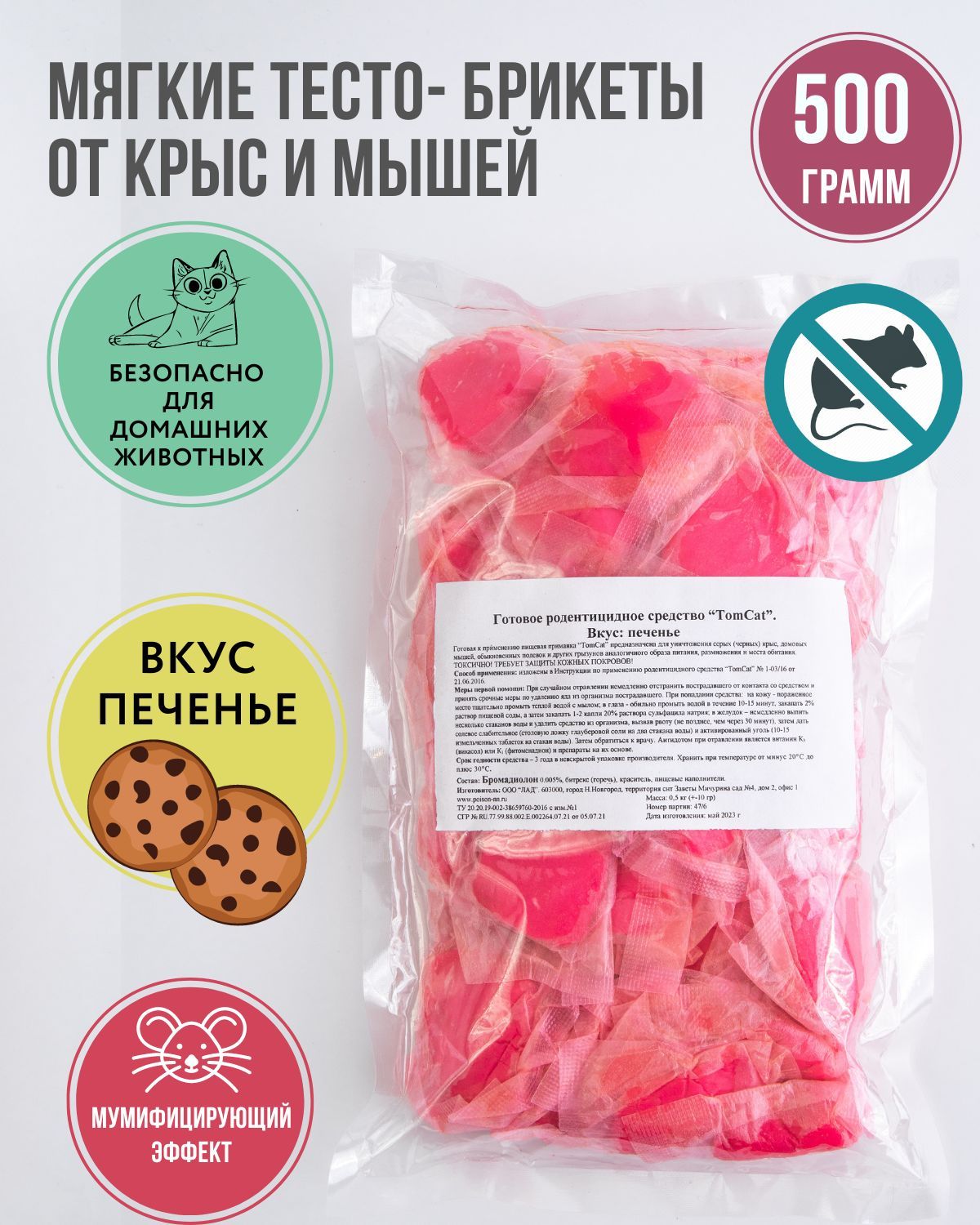 ТОМ КОТ TomCat тесто-брикет, средство от грызунов (мышей, крыс) 500гр, вкус Печенье