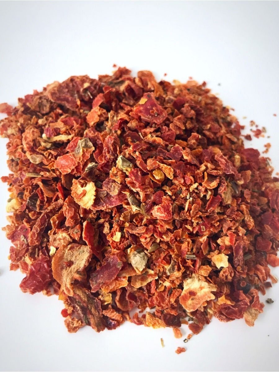 Описание: Вид сушёных помидоров не слишком впечатляет, однако на вкусовые качества это совершенно никак не влияет. Их насыщенный пряный вкус и аромат, а также универсальность применения будут радовать Вас круглый год. Включая сушеные томаты в свой повседневный рацион, вы преобразите и значительно разнообразите его. Очевидная прелесть сушёных томатов, в удобстве их использования и хранения. Добавлять сушеные резаные томаты можно практически в любые блюда: в тесто для хлеба, пирогов, фокаччо, чиабатту, несладкие начинки и начинку для пиццы. Они подходят для первых и вторых блюд, соусов и маринадов.