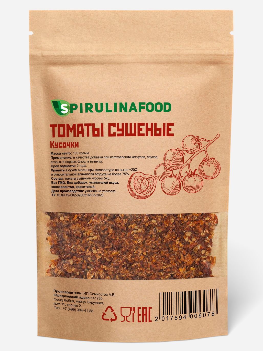 Томаты ( помидоры ) сушеные резаные натуральные Spirulinafood , 100 гр