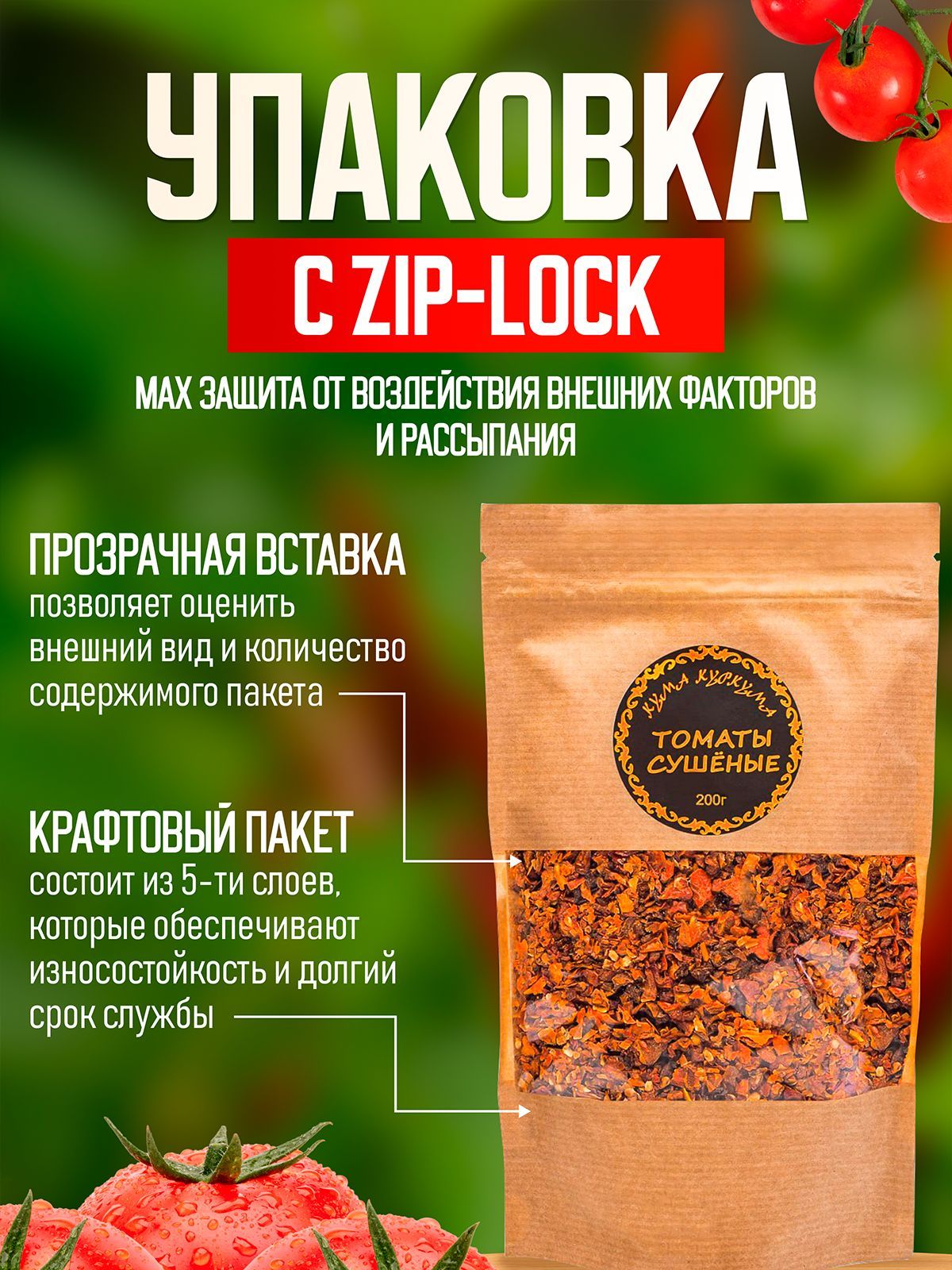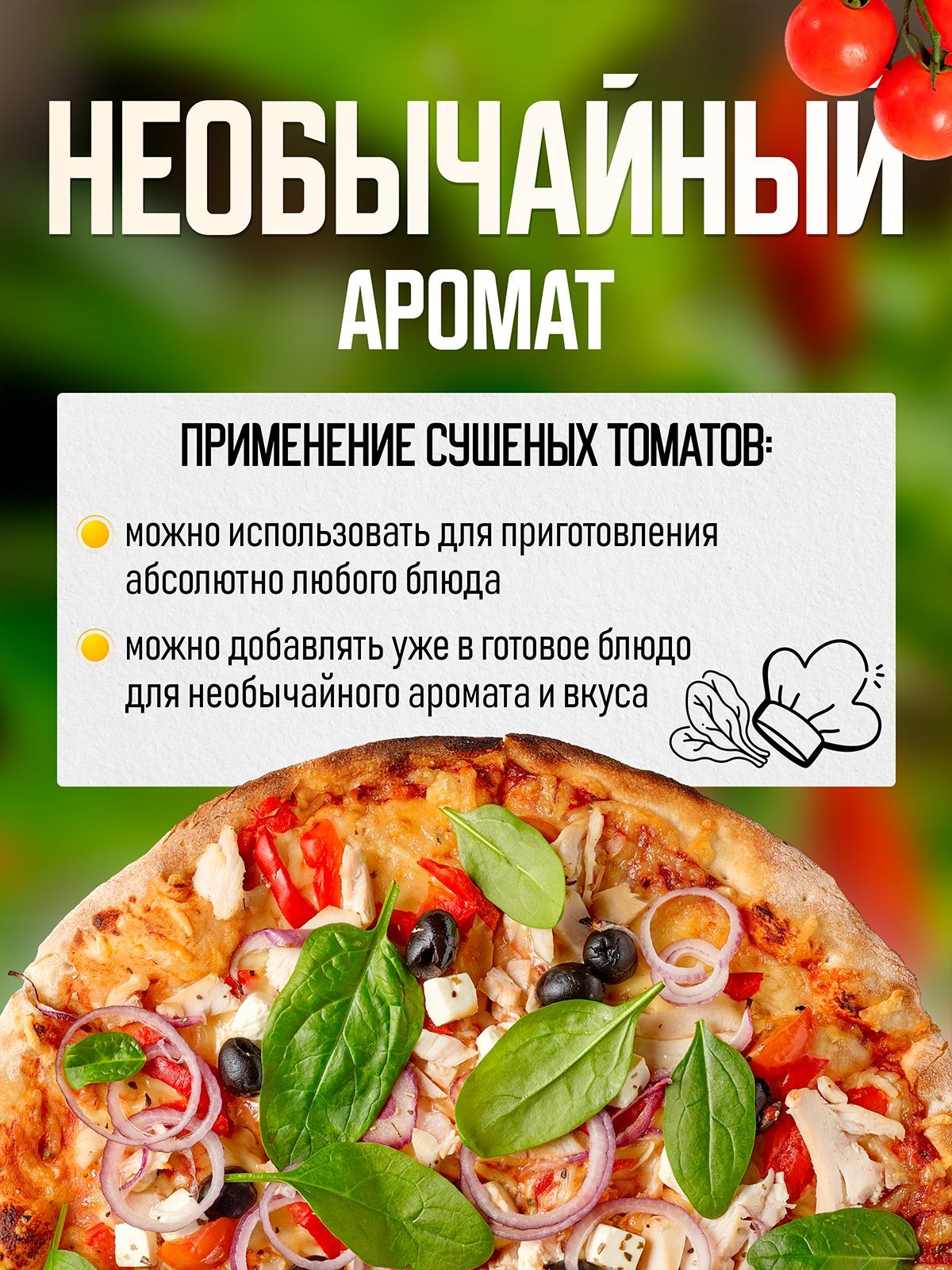 Описание: ТОМАТЫ СУШЕНЫЕ пользуются огромной популярностью и является универсальной приправой. Они идеальны для приготовления горячих мясных и постных блюд, бульонов, овощных рагу, соусов. Вы только попробуйте приготовить еду и добавить немного сушёных томатов, как и других сушёных приправ, вам откроется необычный аромат и вкус. Можно быстро кинуть в любое блюдо щепотку томатов, а не хранить в холодильнике заветренные баночки с кислой томатной пастой. Специи и приправы от российского бренда Кума-Куркума - лучший подарок на любой праздник для вас и ваших любимых!