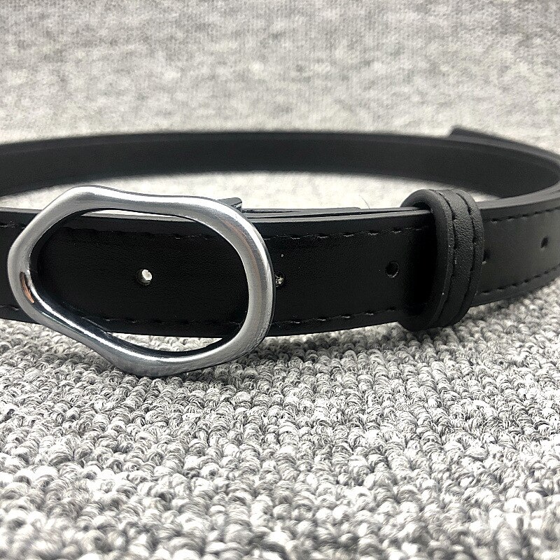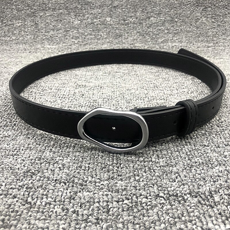 Тонкий несимметричный ремень из искусственной кожи с металлической пряжкой в Корейском стиле, модный нишевый Универсальный тонкий ремень унисекс, 2023