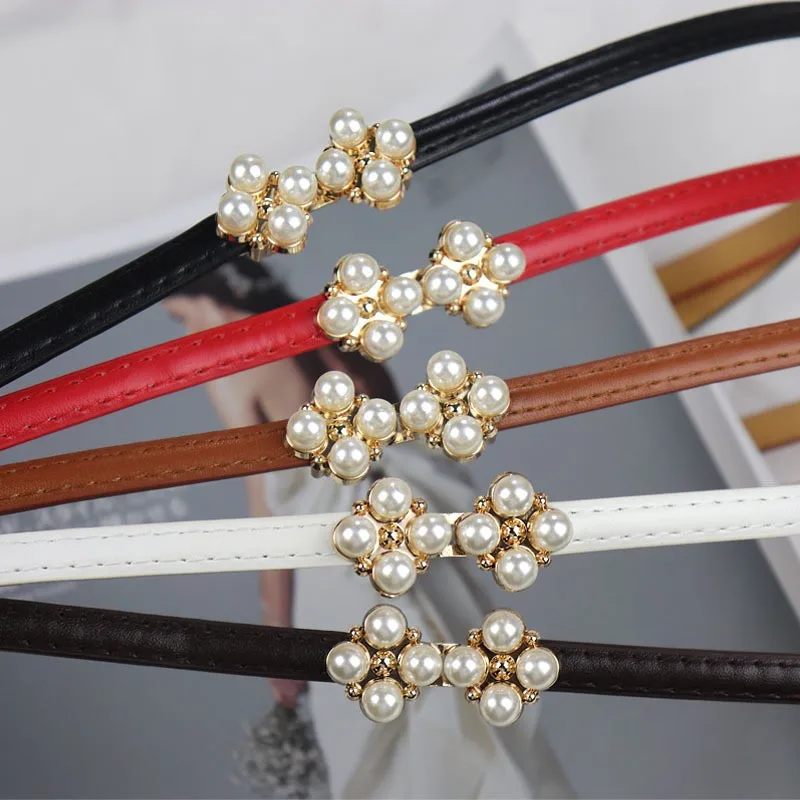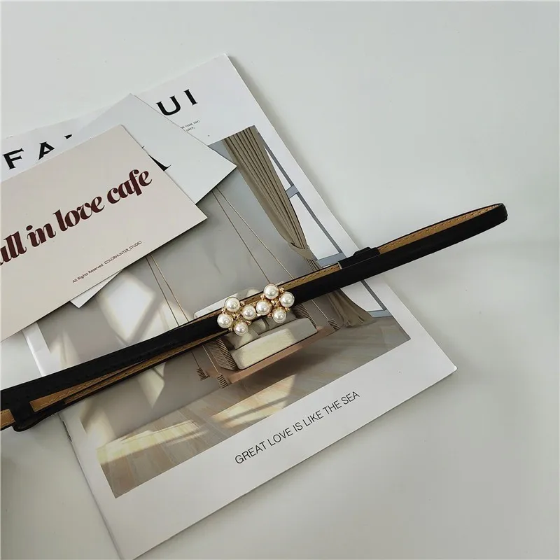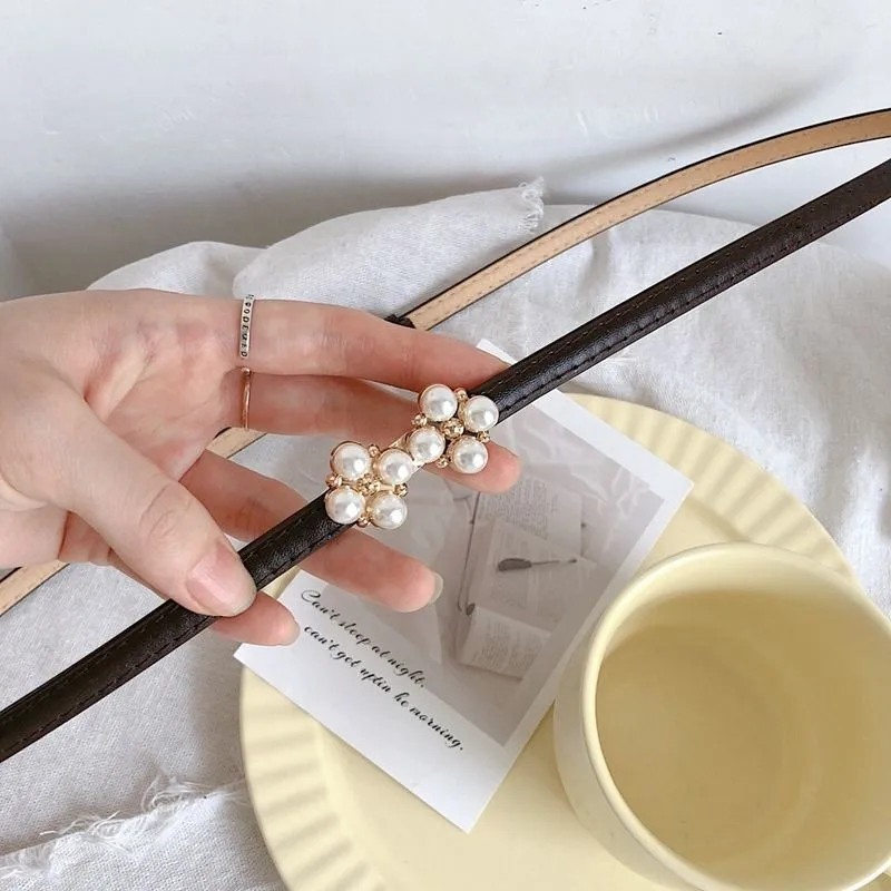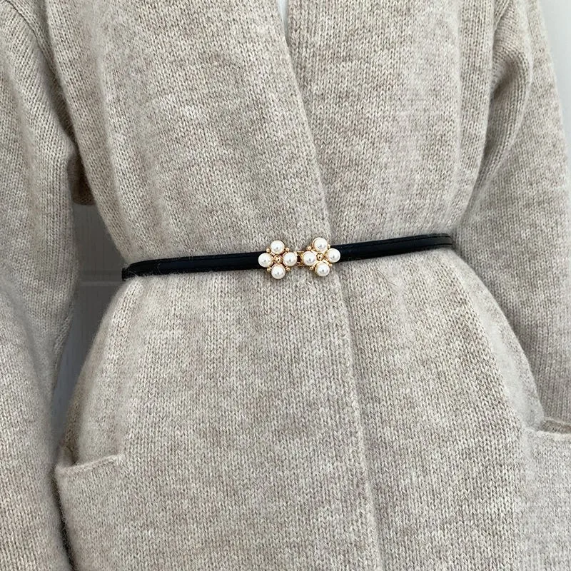 Юбка с поясом с четырехлистным клевером и жемчугом, украшение, втягивание талии, модная Корейская версия, регулируемый тонкий пояс