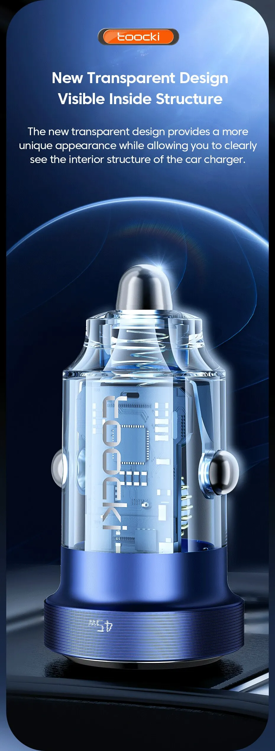 Имя: 45W двухпортовый алюминиевый сплав прозрачное автомобильное зарядное устройство