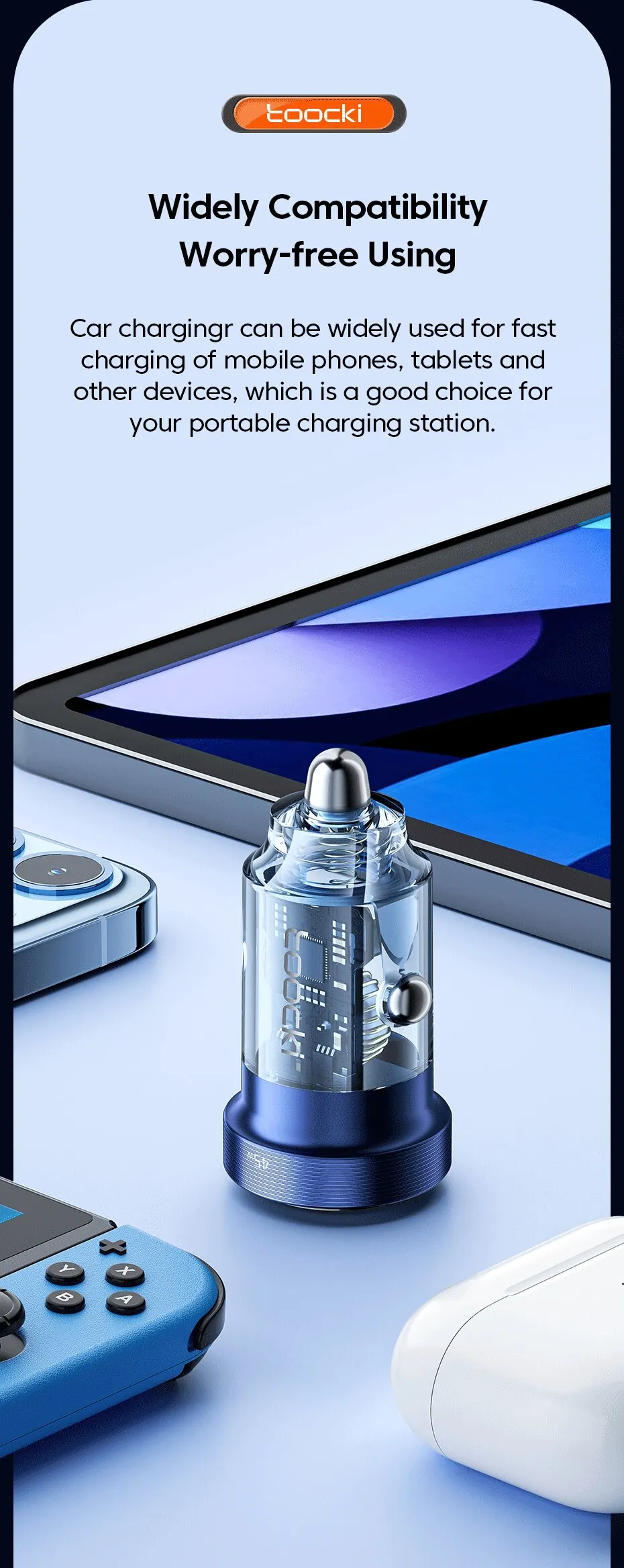 Toocki 45W USB Автомобильное зарядное устройство типа C Быстрая зарядка авто мобильный телефон зарядное устройство адаптер для iPhone Samsung Huawei PD AFC SCP QC 3,0