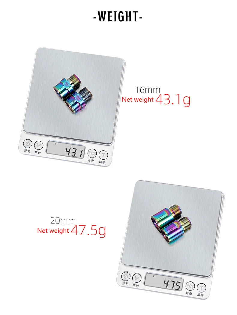 Вес: 16 мм (43 г/пара), 20 мм (около 48 г/пара)