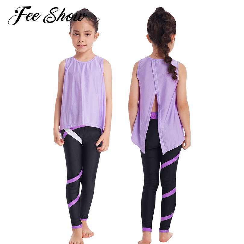 Топ без рукавов с разрезом на спине и леггинсы для девочек