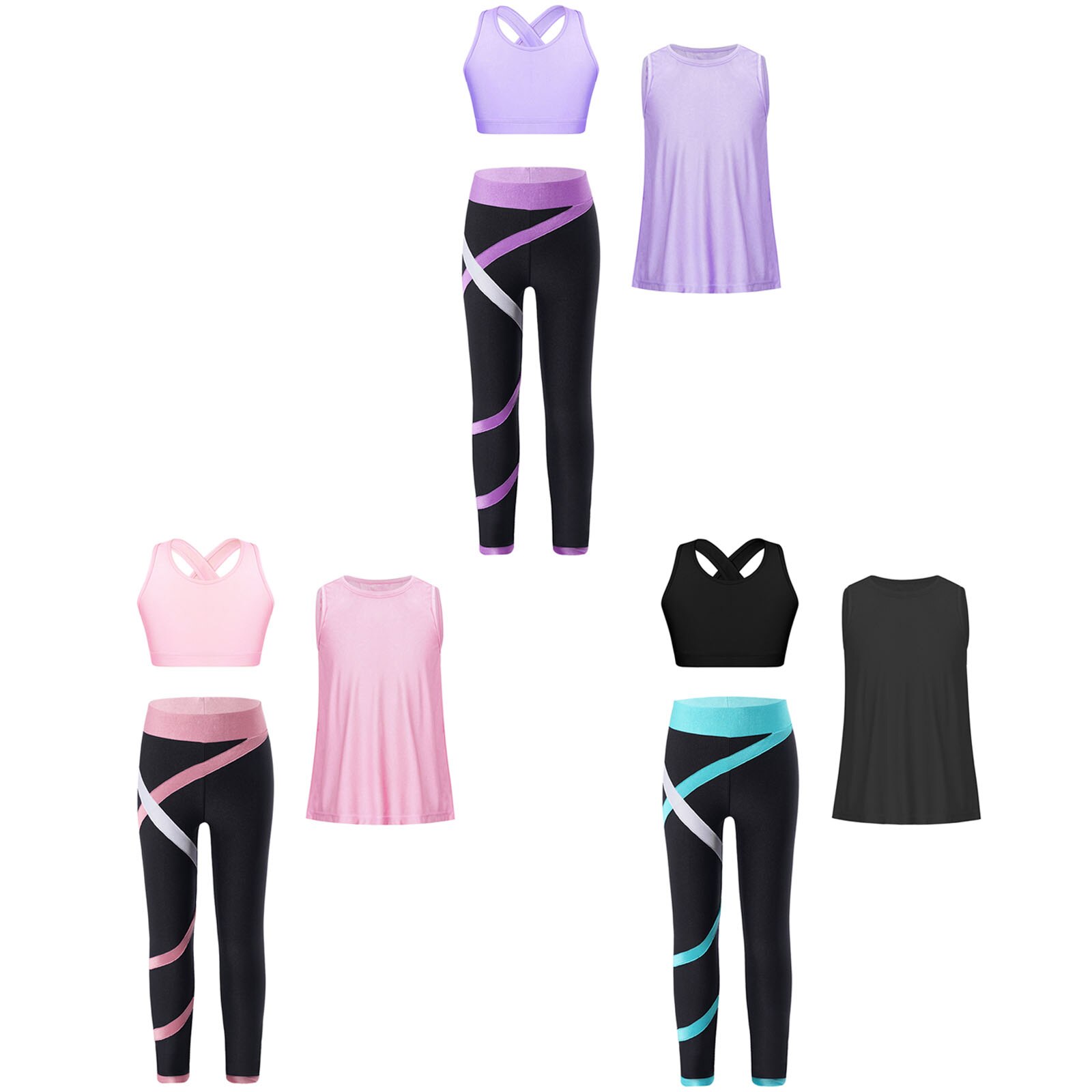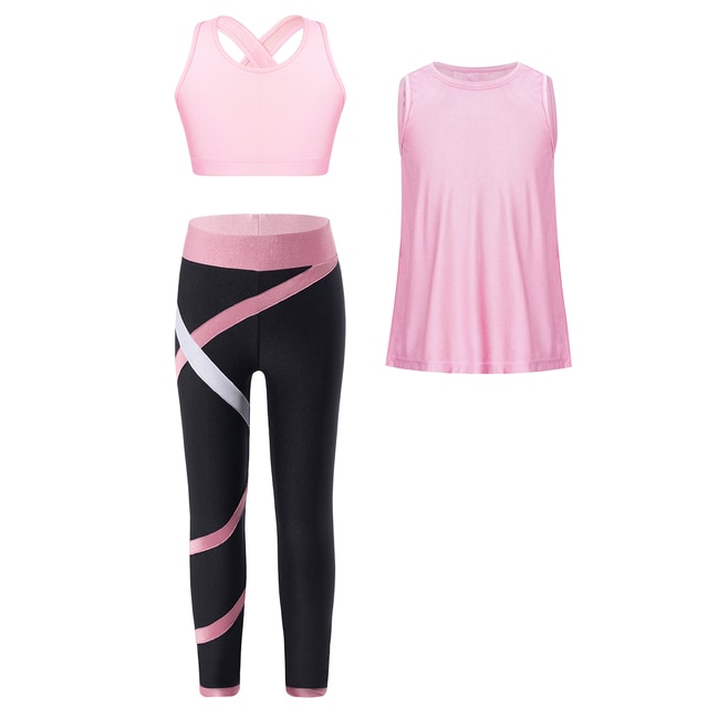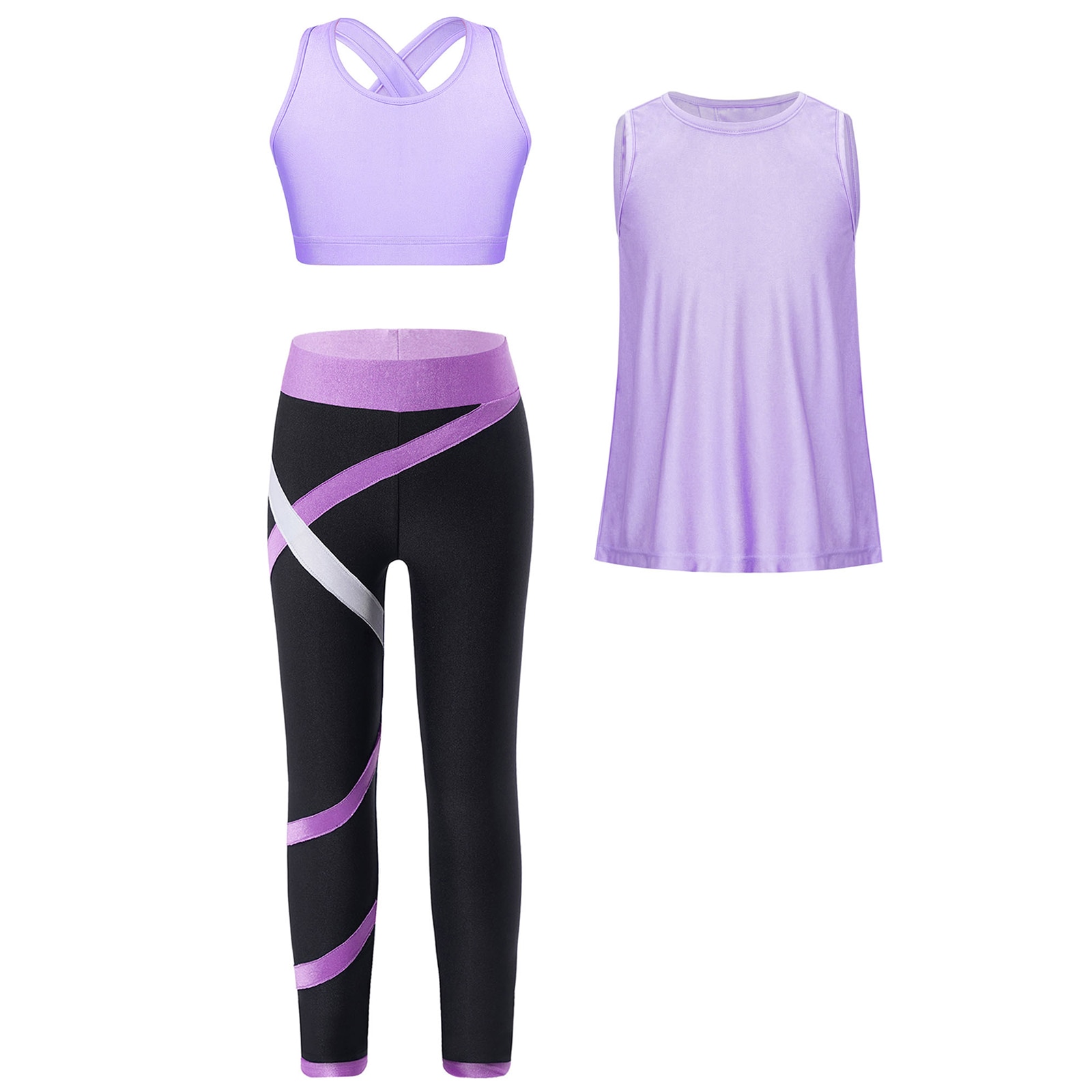 Детские топы для девочек с укороченным топом и леггинсами, комплект для йоги.