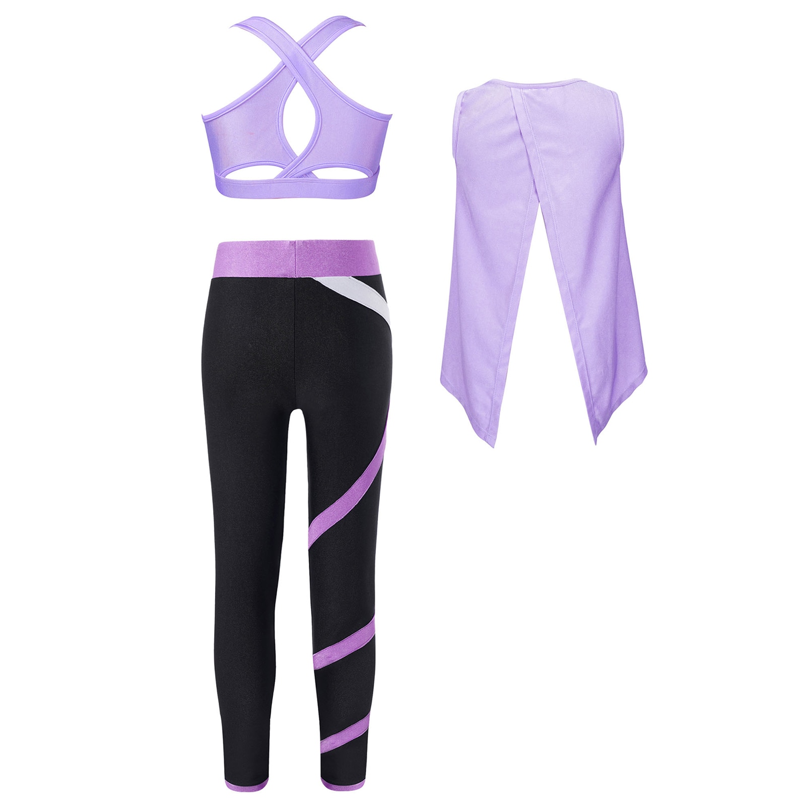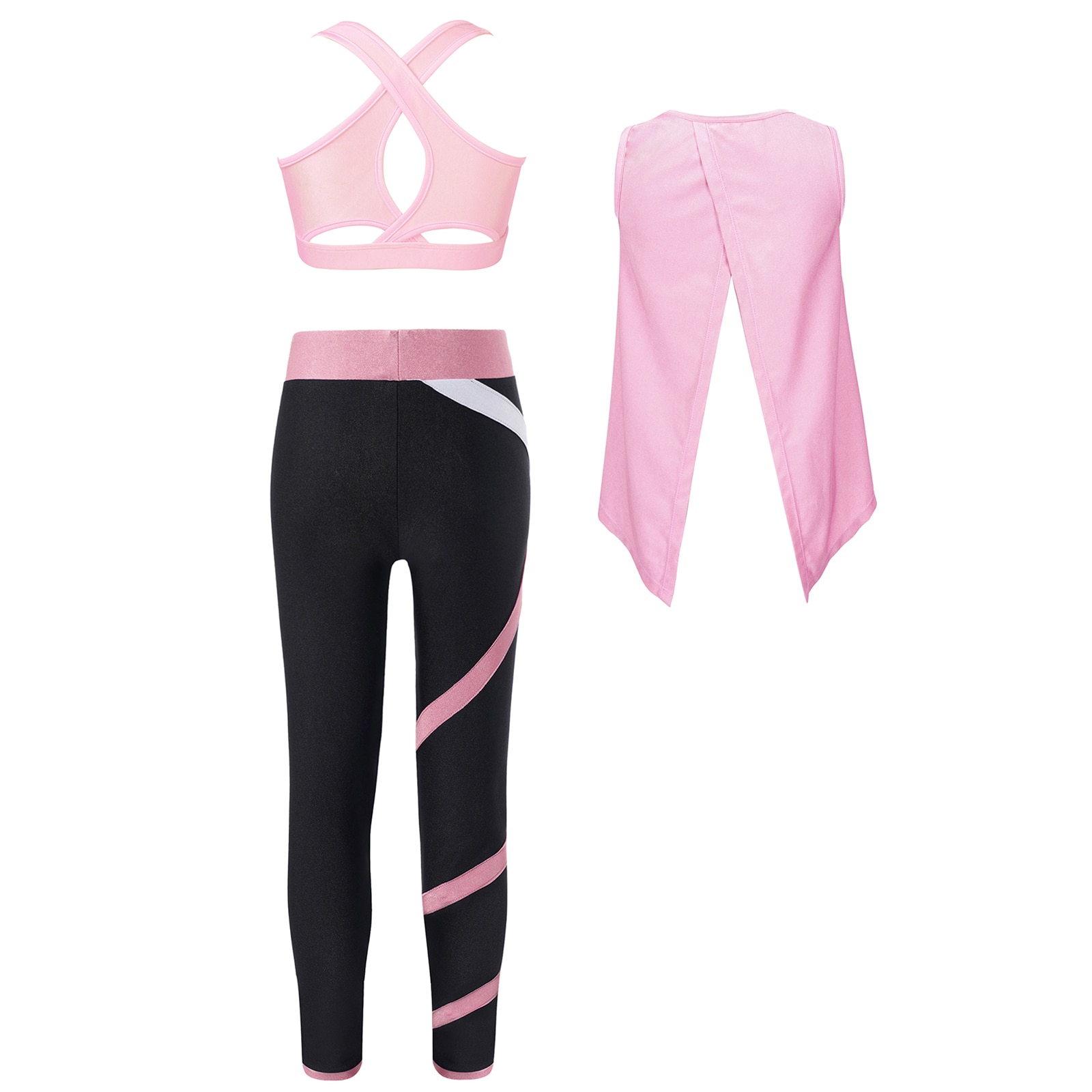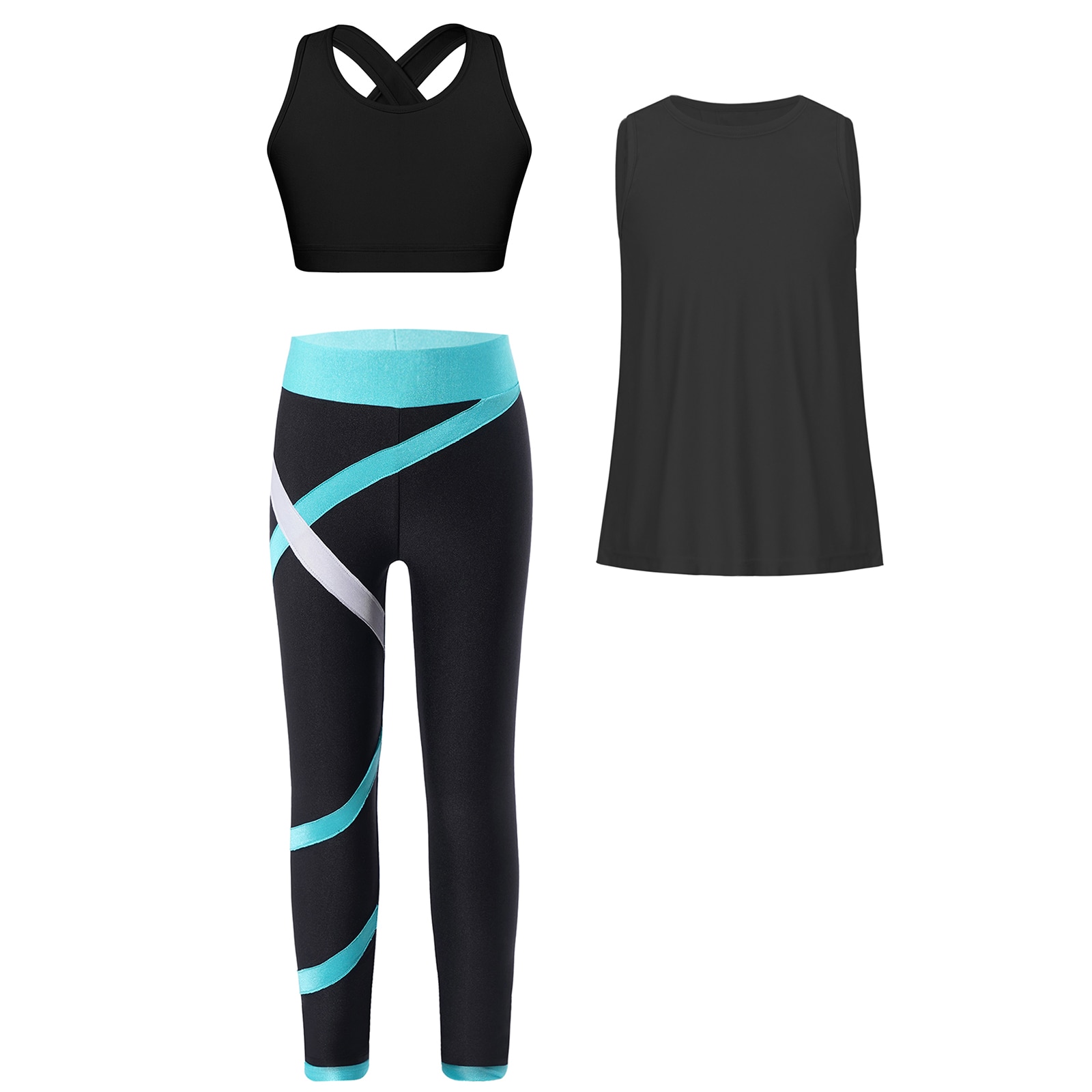 Детские топы для девочек с укороченным топом и леггинсами, комплект для йоги.