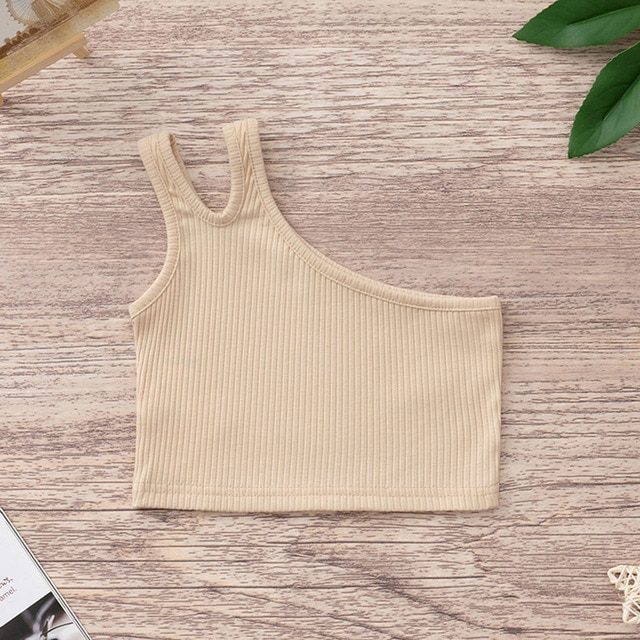 Топ для новорожденных и малышей, Летние повседневные топы для девочек, одноцветные топы с одним плечом без рукавов, короткий жилет, наряды для детей от 2 до 7 лет, лето