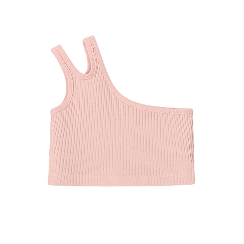 Топ для новорожденных, летняя повседневная однотонная безрукавка на одно плечо для девочек 2-7 лет