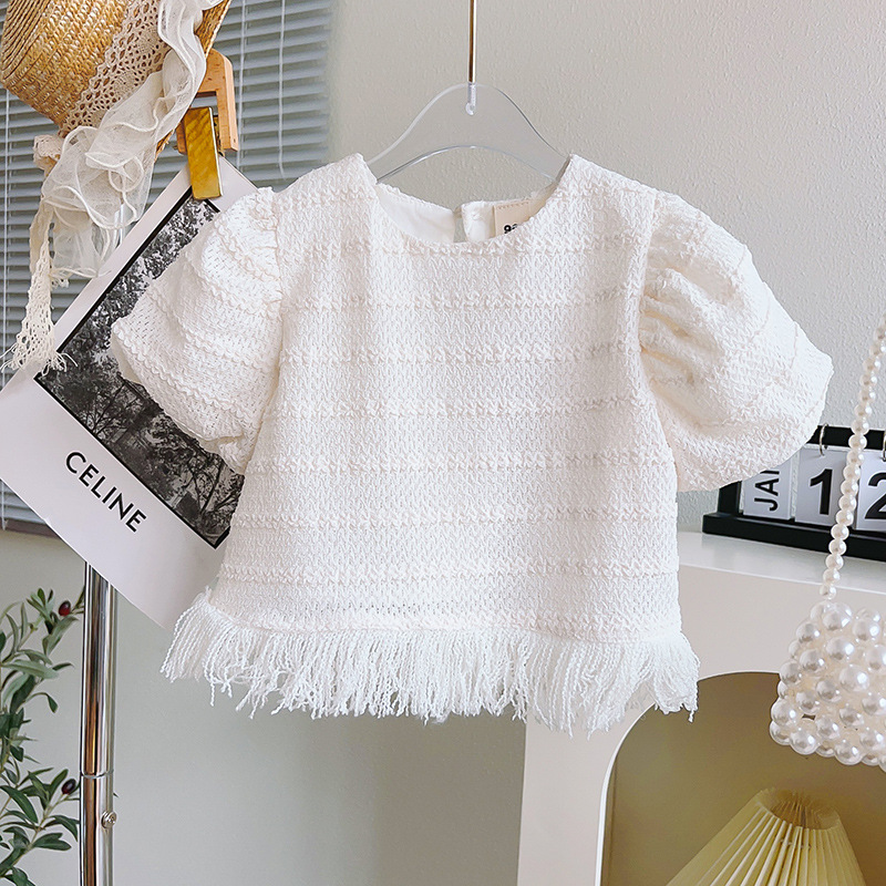 Топ с коротким рукавом для девочек, новинка, летний детский Свободный Топ с коротким рукавом