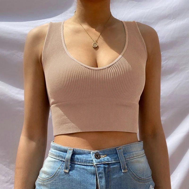 Топ женский бесшовный, бюстгальтер без косточек, кроп-топ, нижнее белье с U-образным вырезом, в рубчик, пикантное нижнее белье, Спортивная майка с U-образным вырезом