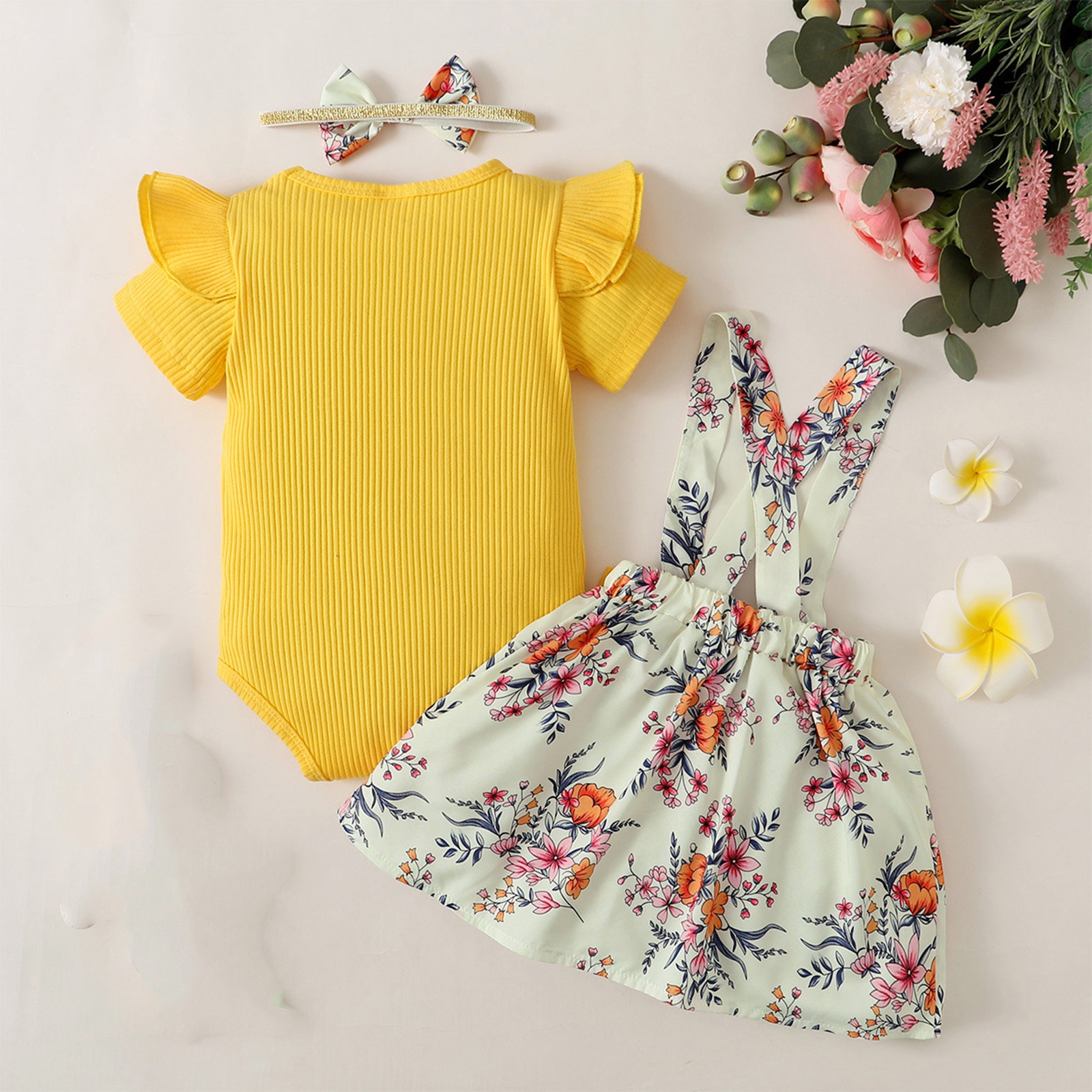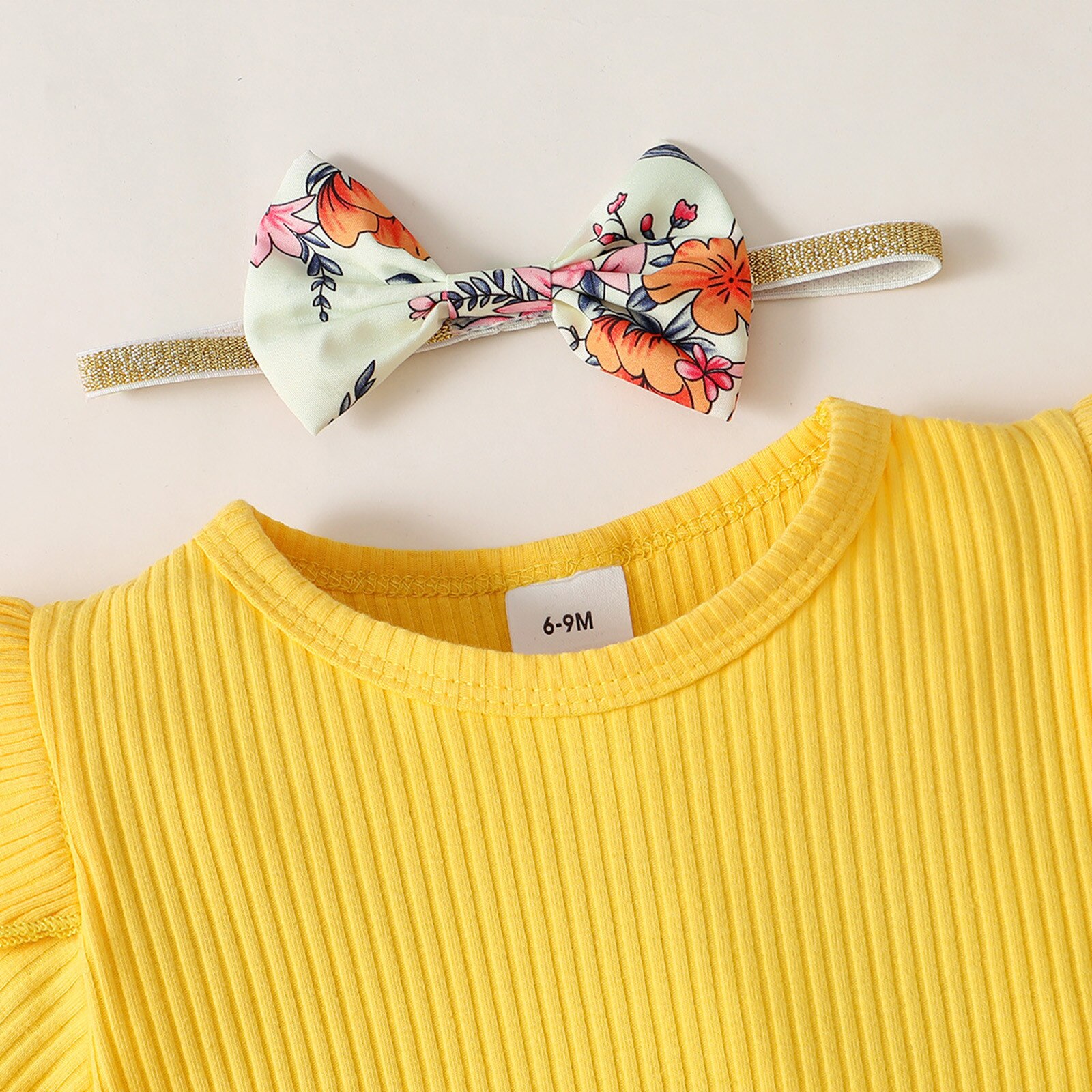 Топы с короткими рукавами и цветочным принтом для маленьких девочек; Платье-майка с повязкой на голову; Комплект повседневной одежды из 3 предметов; Детские штаны и рубашка