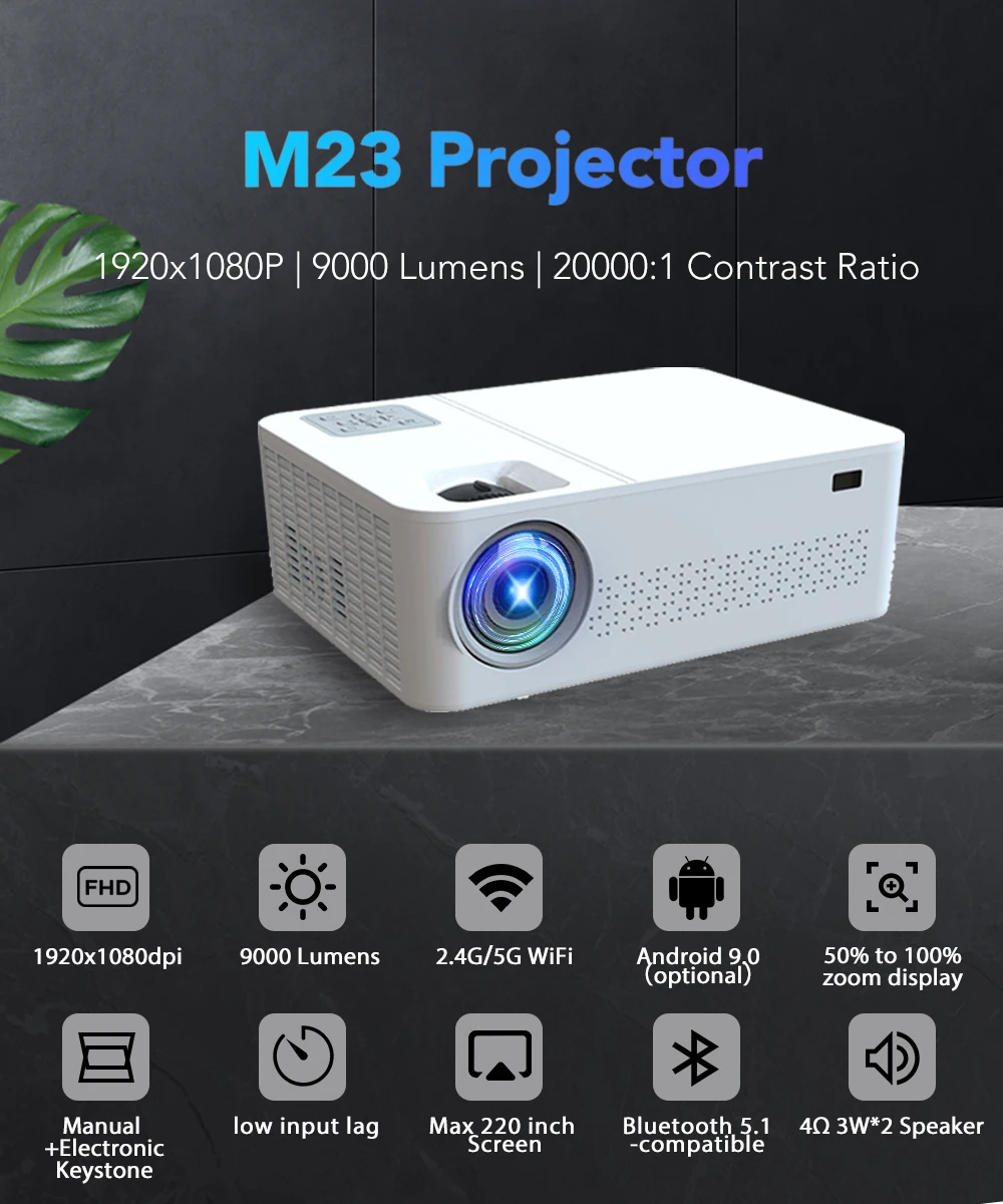 TouYinger M23 проектор Full HD Домашний кинотеатр 9000 люмен светодиодный проектор 4K проекторы Поддержка Bluetooth