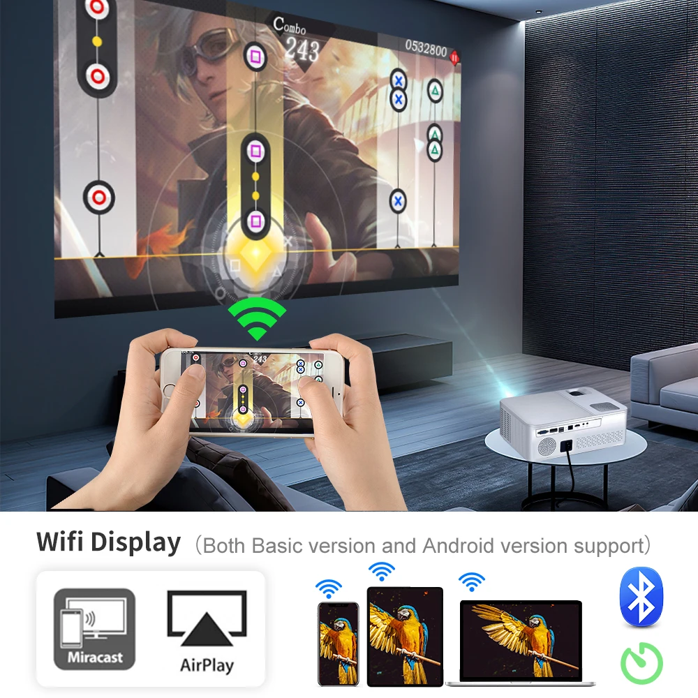 Bluetooth-совместимый, он может подключать Bluetooth-динамик, проектор также может подключать ваш телефон в качестве самого Bluetooth-динамика.