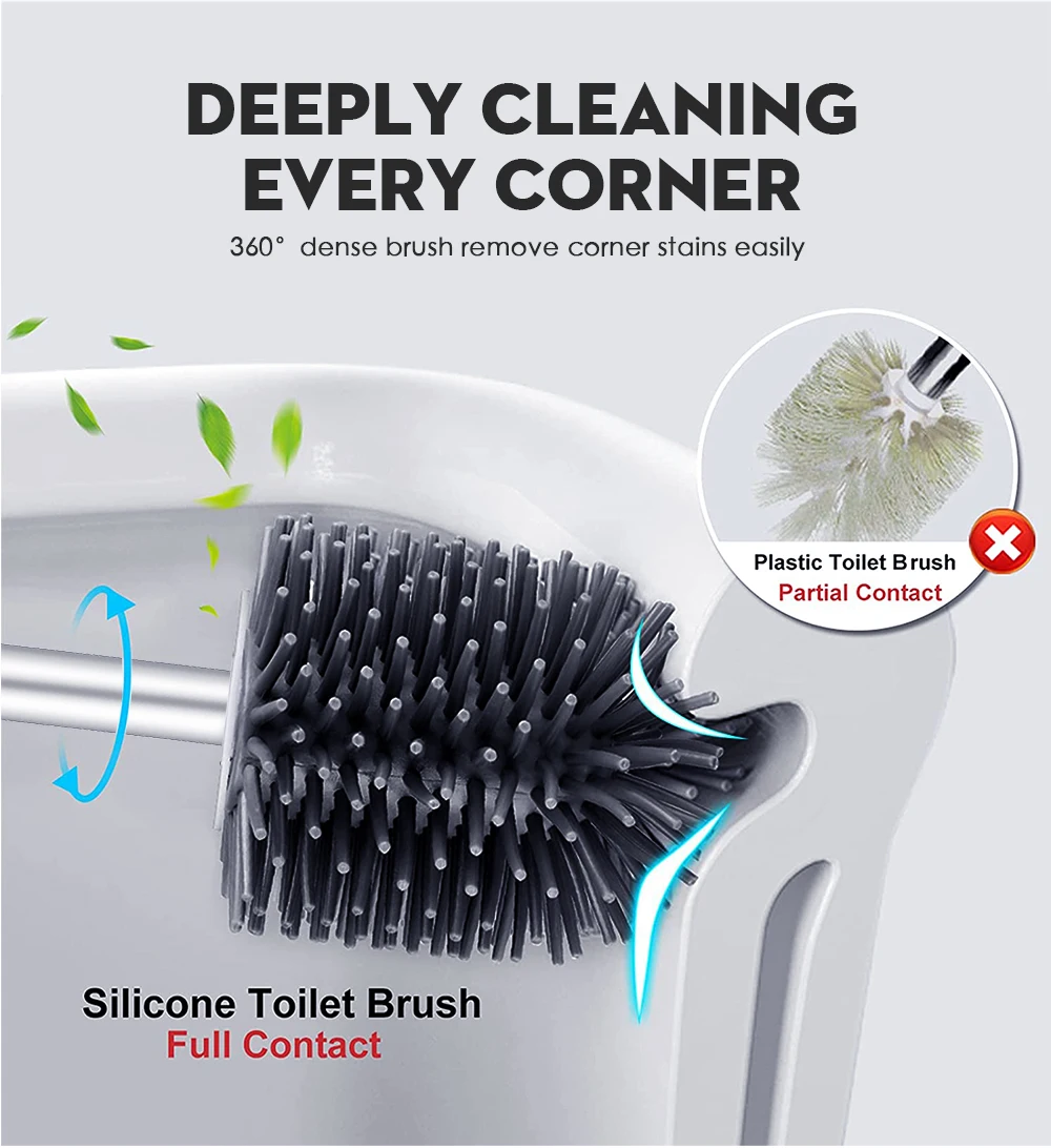 TPR Силиконовая щетка для унитаза Настенная стандартная основа Мягкая щетина с держателем Щетка для чистки Туалет Аксессуары для