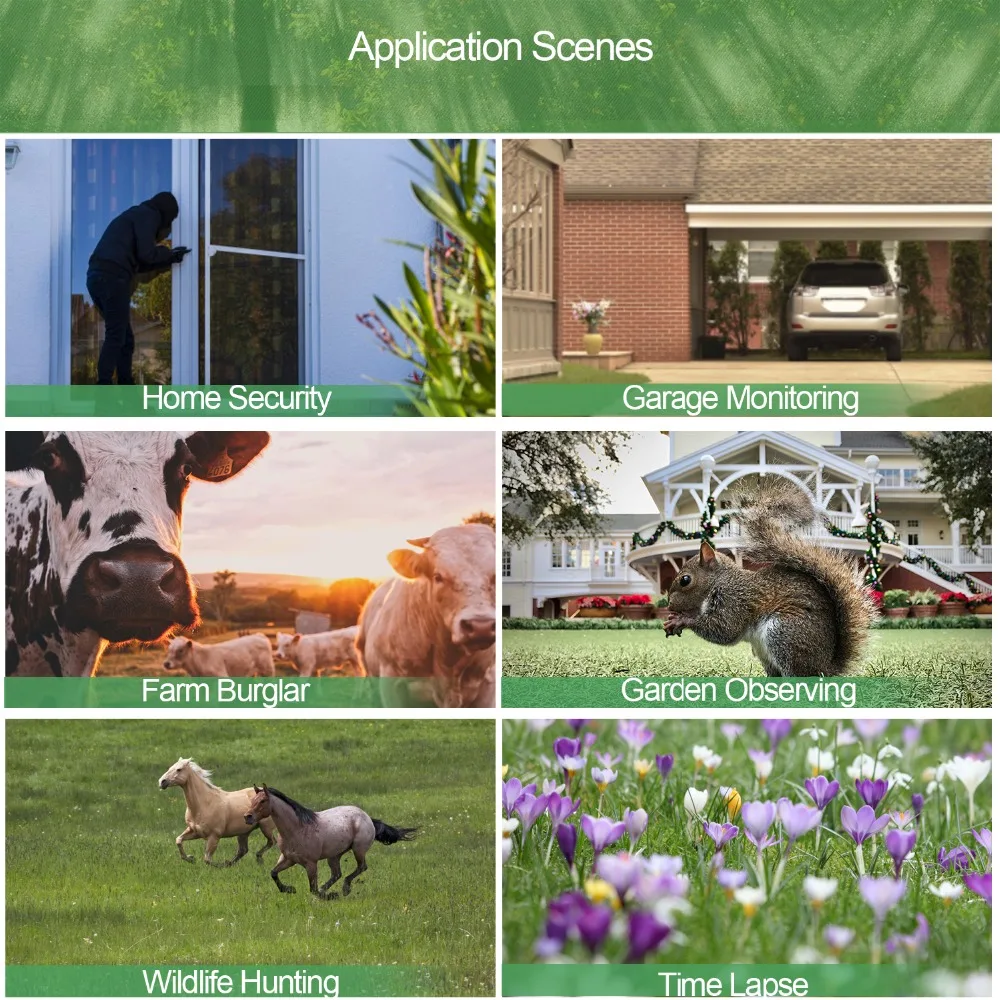 Это цифровая камера высокой четкости с функцией приложения и автоматической камерой наблюдения, мониторингом и разведкой. Охотничьи камеры используют термочувствительную технологию обнаружения животных (человека) для автоматического захвата изображений высокой четкости (20 миллионов пикселей) и потокового видео. Эта охотничья камера является энергоэффективной без обнаружения животных (человеческого тела), и ее потребление энергии в режиме ожидания составляет 0,1 мА. Он может быть на оповещении в течение длительного времени. Он также может автоматически снимать высококачественные изображения (до 20 миллионов пикселей) или записывать видео высокой четкости (WVGA), которые могут быть отправлены через мобильные устройства через сети 4G. Когда он начинает делать инфракрасные (черно-белые) фотографии и видео, Он поставляется с 2,0 футов цвет ЖК-дисплей камеры и диктофон с аудио встраивания для удобства в использовании. MMS/Электронная почта поддерживается сетевой передачей 4G. Камера имеет функцию инфракрасной съемки и может автоматически снимать сверхдолгое Время в режиме ожидания в отсутствие светильник в ночное время. Кроме того, эту камеру можно использовать как портативную цифровую камеру, переносить, это хорошая помощь вам, чтобы поймать сюрпризы. 32G Micro SD карта и 16 миллионов пикселей, супер водонепроницаемый, может адаптироваться ко всем видам сред, не только для охоты, наблюдения за животными и исследований, но и для Shangcha o,company.com munity, семейный и другой контроль безопасности.