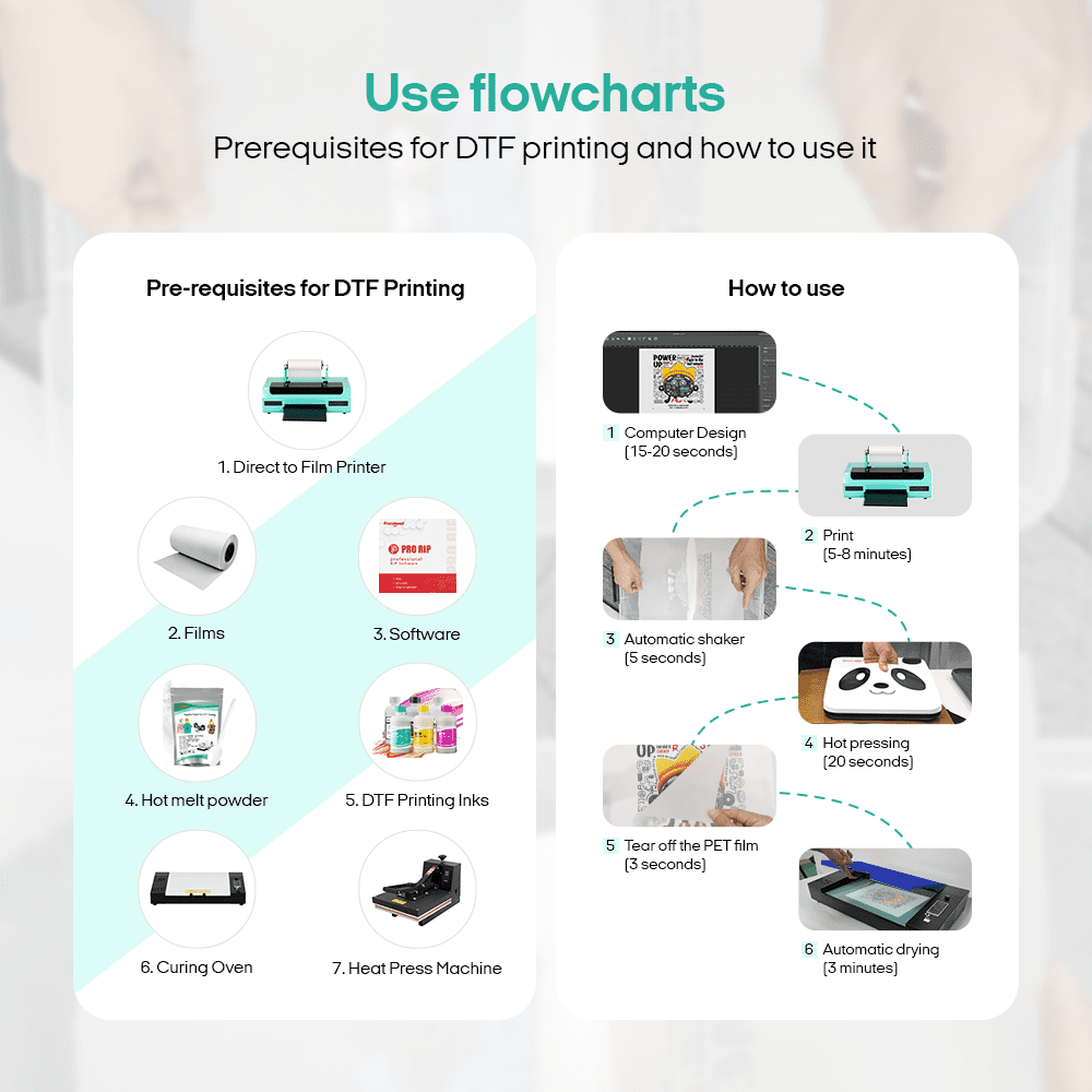 Процесс DTF так же прост в работе, как и предполагает его название-печать на пленке и прямая перенос ее на ткань. Наиболее заметным фактором, который делает этот процесс достойным использования среди большего числа людей, является свобода выбора практически любой ткани. Будь то полиэстер, хлопок, шелк или синтетические волокна, такие как вискоза или террикт, процесс печати DTF будет творить на них свое волшебство.