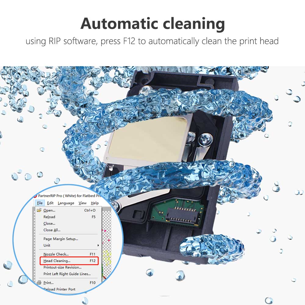 Используя программное обеспечение RIP, нажмите F12, чтобы автоматически очистить печатающую головку
