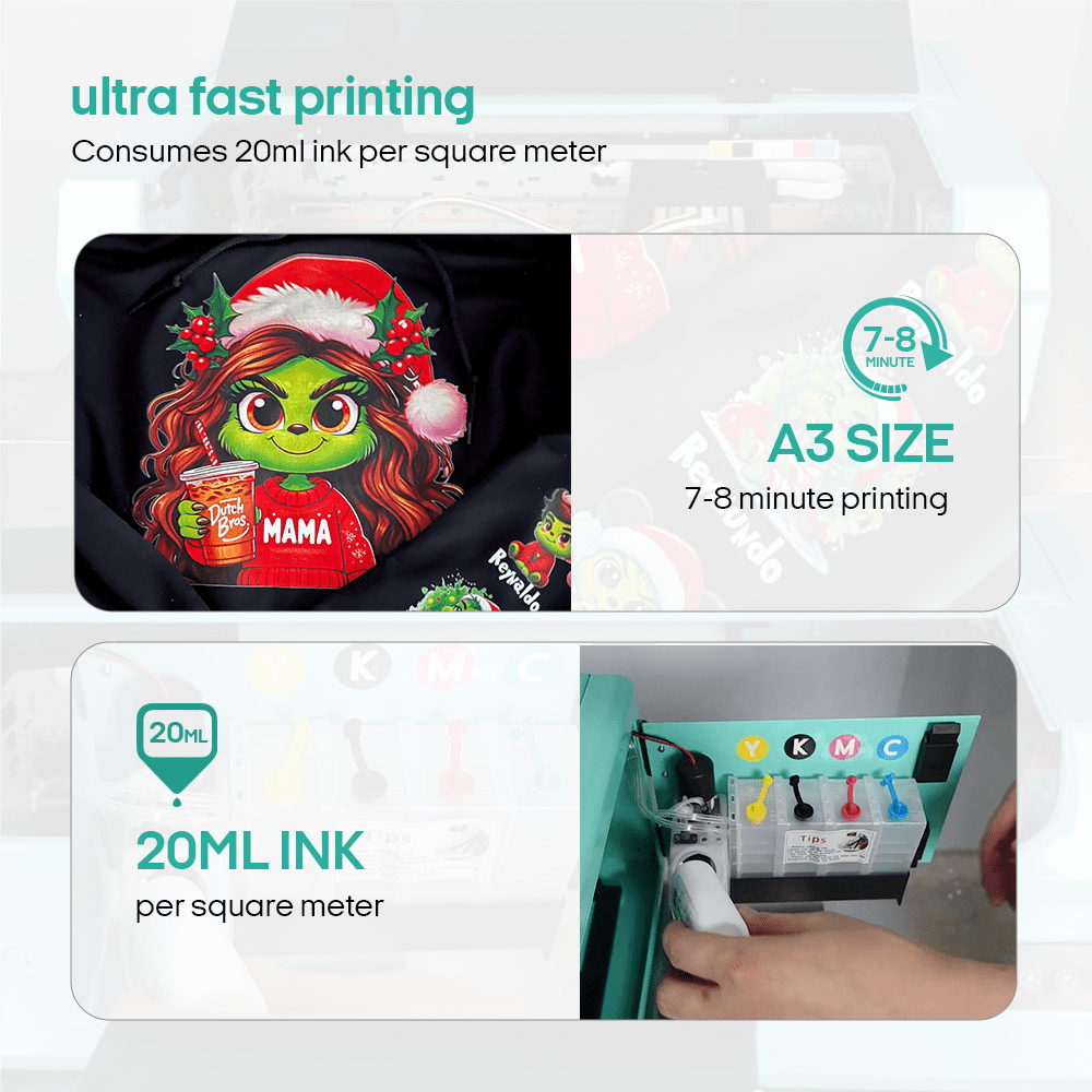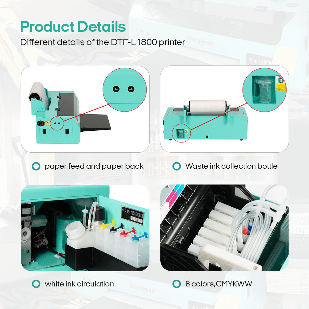 Procolored L1800 DTF Трансферный Принтер-это высококачественный и простой в использовании принтер для переноса пленки, обеспечивающий вывод промышленного качества с впечатляющими производственными скоростями, работает для нескольких типов тканей (хлопок, поли, смеси и многое другое), причем как на белом, так и на темном текстиле.