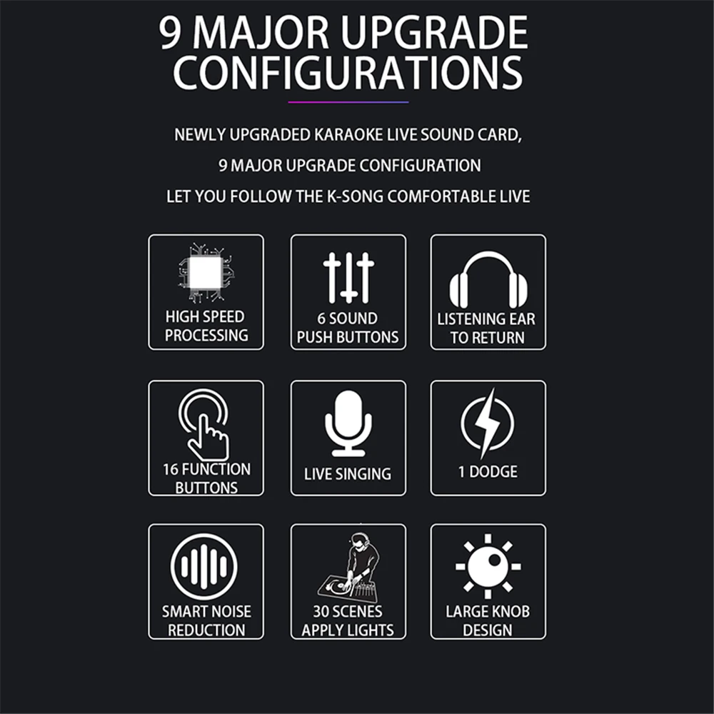 [Обновленный дизайн] это новая улучшенная звуковая карта караоке с высокой скоростью обработки, 6 звуковых клавиш, 16 функциональных клавиш и другие основные конфигурации обновления, сделают вашу жизнь более комфортной.