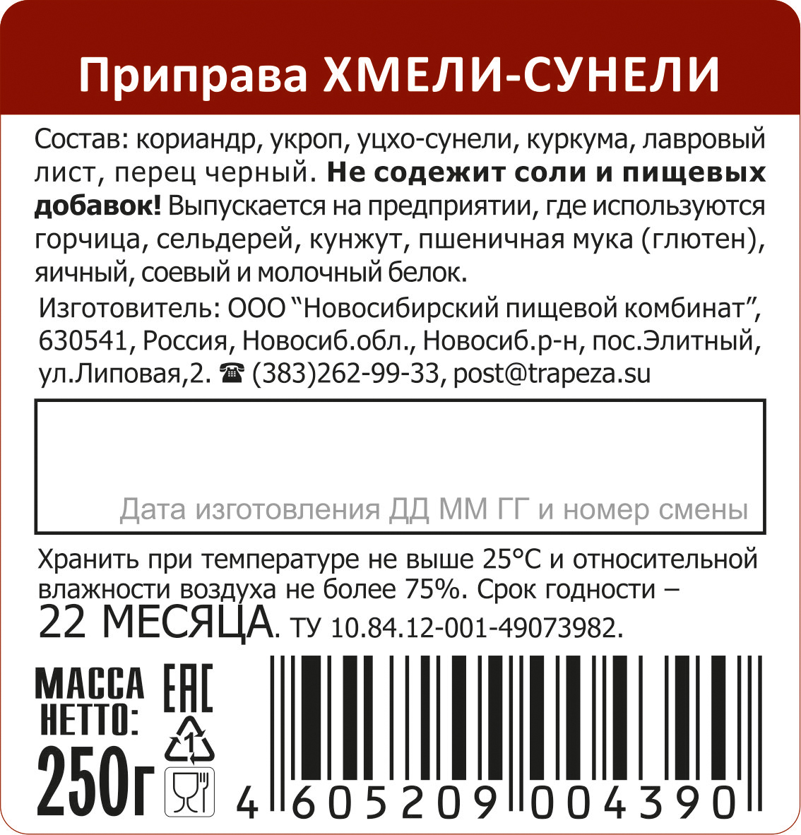 кориандр, укроп, уцхо-сунели, куркума, лавровый лист, перец черный.