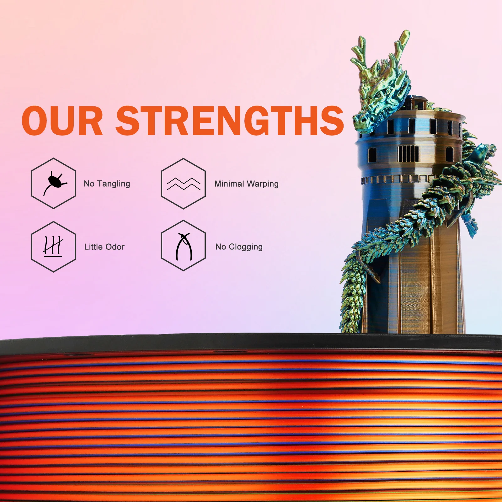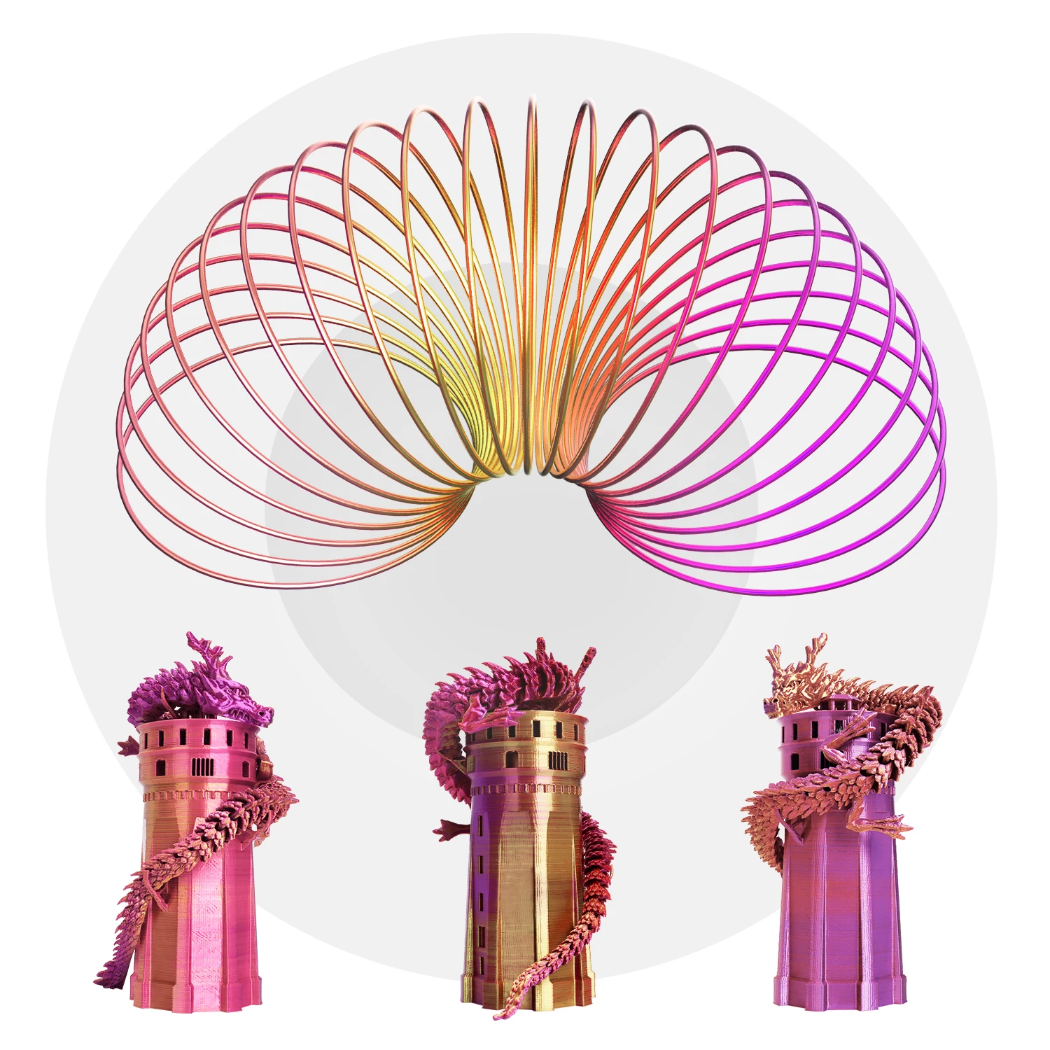 • Шелковая Трехцветная коэкструзионная PLA имеет 3 независимых цвета в одной нити