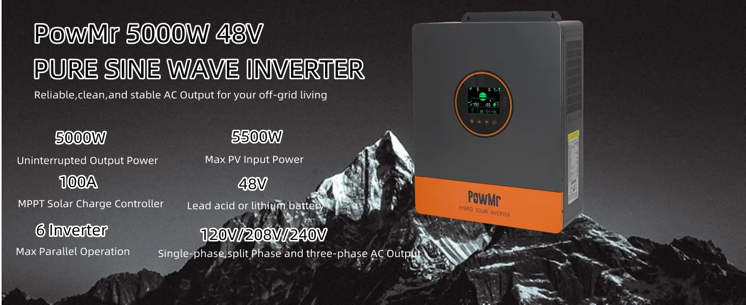 Трехфазный Автономный/сетевой солнечный инвертор PowMr 5000 Вт 48 В, Раздельный фазовый 208/500 В переменного тока с контроллером солнечной зарядки а PV в