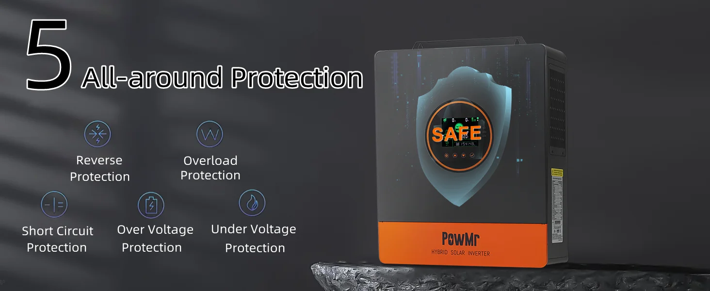 Множественная защитаРазработан с ЖК-экраном и 3 светодиодными индикаторами для динамического отображения системных данных и рабочего состояния, а также полной защитой, включая защиту от короткого замыкания, защиту от перенапряжения и пониженного напряжения, защиту от перегрузки, обратную защиту, и т. д.