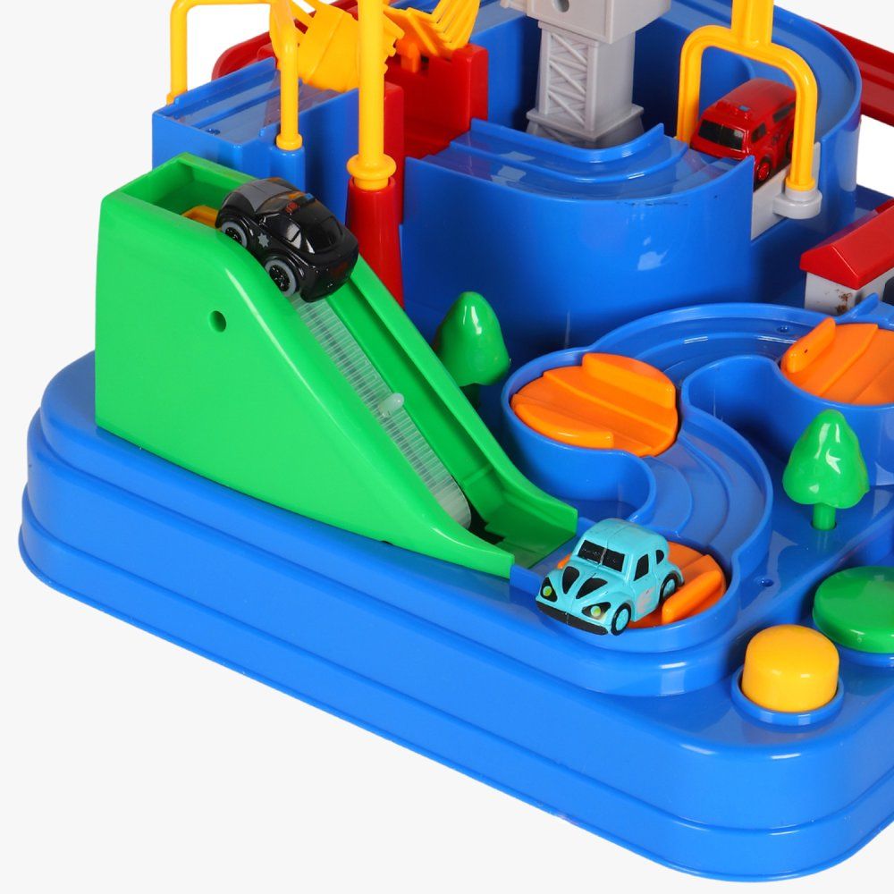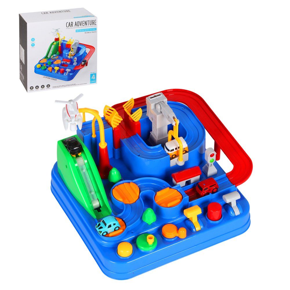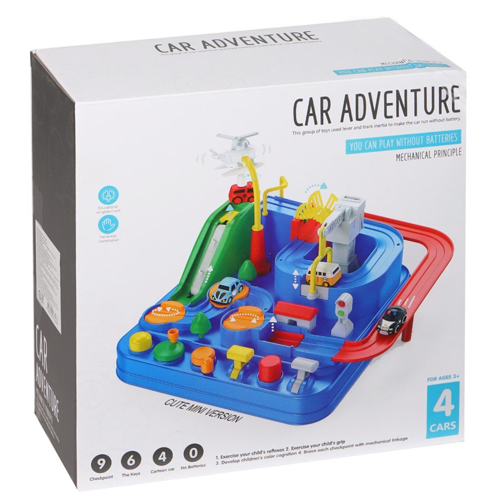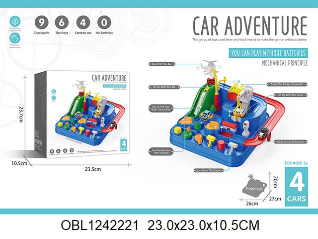 Помогите машинкам пройти интересный лабиринт! Нажимайте на кнопки, поворачивайте рычаги, проходите препятствия и достигайте финиша. Прокатите машинку по конвейеру, переместите ее с помощью грузового вертолета и подъемного крана и соедините мост, чтобы наладить движение. Конструкция игры полностью механическая и не требует батареек.