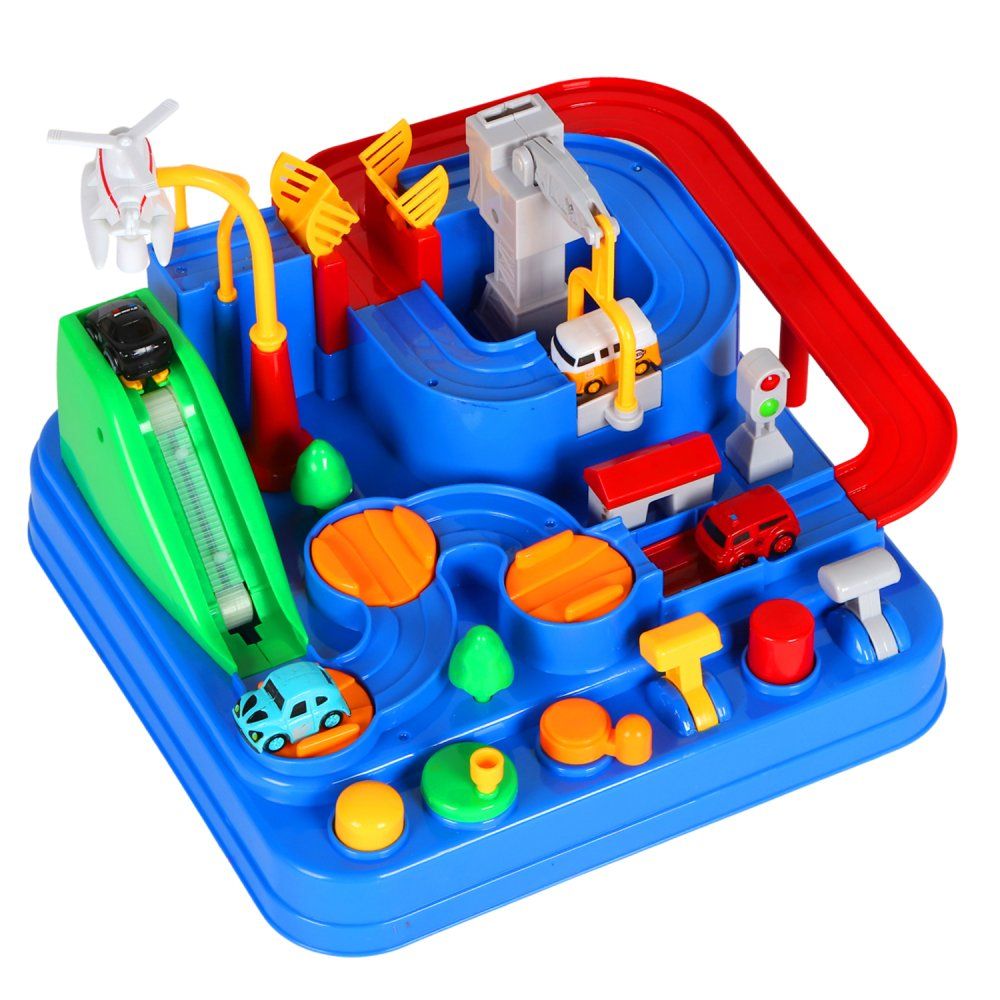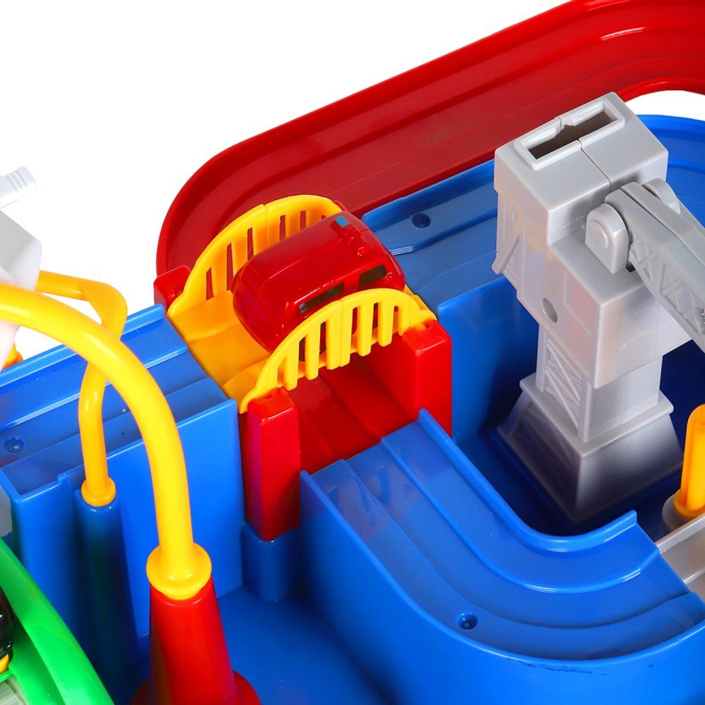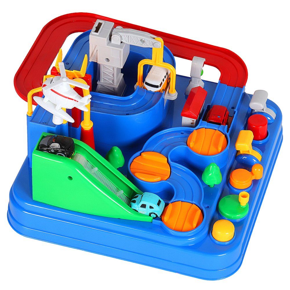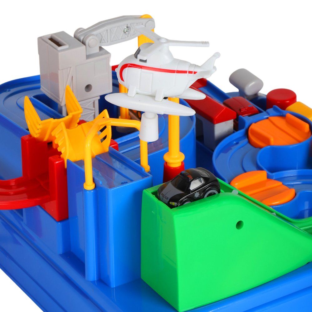 Помогите машинкам пройти интересный лабиринт! Нажимайте на кнопки, поворачивайте рычаги, проходите препятствия и достигайте финиша. Прокатите машинку по конвейеру, переместите ее с помощью грузового вертолета и подъемного крана и соедините мост, чтобы наладить движение. Конструкция игры полностью механическая и не требует батареек.