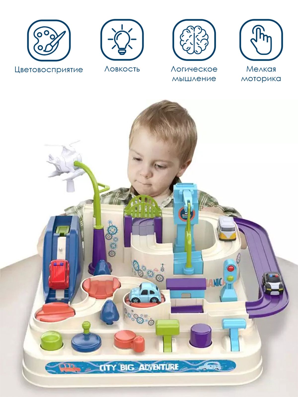 Трек с машинками гоночный WiMi развивающий для малышей, интерактивная парковка, автотрек для машинок детский из прочного пластика