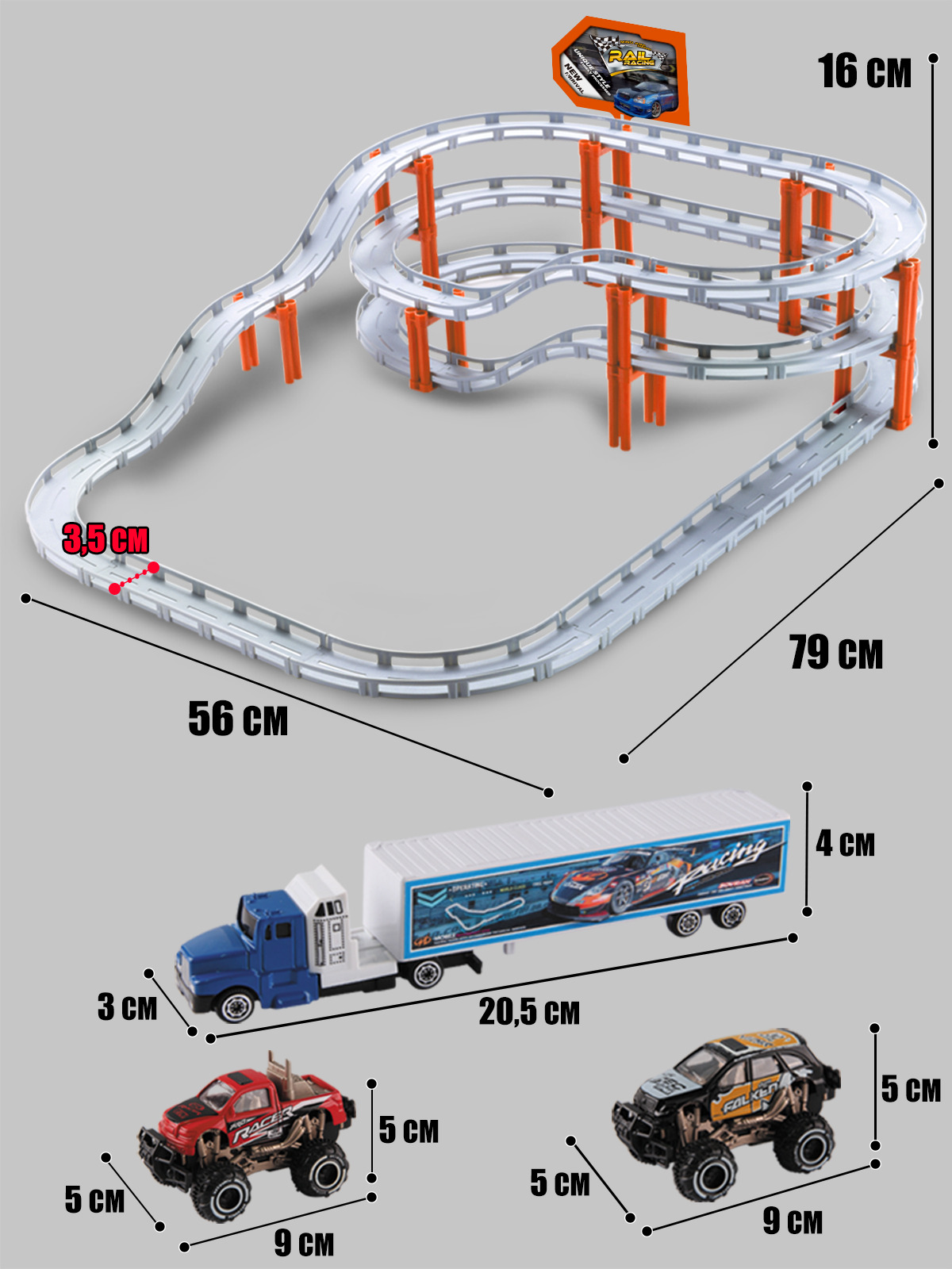 правил дорожного движения.Отличный подарокТрек гонки - это отличный подарок для Вашего ребенка на день рождения, новый год, 23 февраля или любой другой праздник.