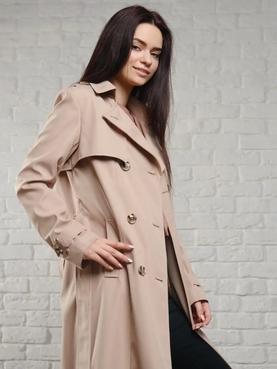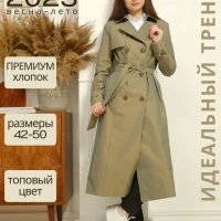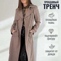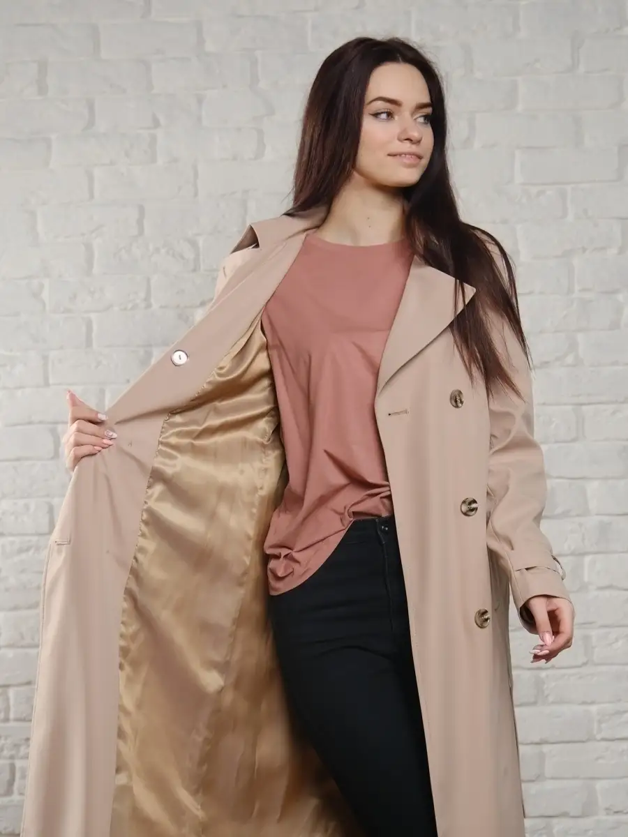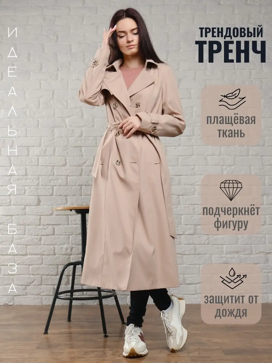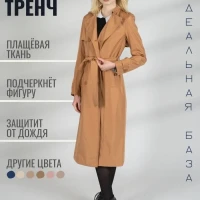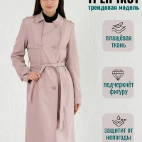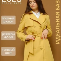 Описание: РЕКОМЕНДУЕМ брать НА РАЗМЕР БОЛЬШЕ своего. Тренч женский – это классический тренчкот, который уже стал неотъемлемой частью базового гардероба на весну. Длинный плащ с поясом и полуприлегающей посадкой волшебно подчеркивает фигуру и создает актуальный современный образ. Длина миди, по спинке 116 см. Тренчкот женский из плащевой ткани не промокает в дождь и защитит вас от ветра благодаря особой водоотталкивающей пропитке материала. Двубортный тренчкот - это отличный выбор для динамичного образа жизни девушек, которые ценят комфорт, качество и стиль! Детали: Классический английский воротник. Крой прямой полуприлегающий. Двубортная застежка с двумя рядами пуговиц. Прямой втачной рукав. Шлица. Кокетка, погоны, паты на рукавах, шлевки под пояс. Прорезные карманы с листочкой. Ростовка рассчитана на рост 164 см. Материал - плащевая ткань (полиэстер 100%), непромокаемый, есть ветрозащита. Сезон: теплая весна от +10+15 градусов и прохладное лето.