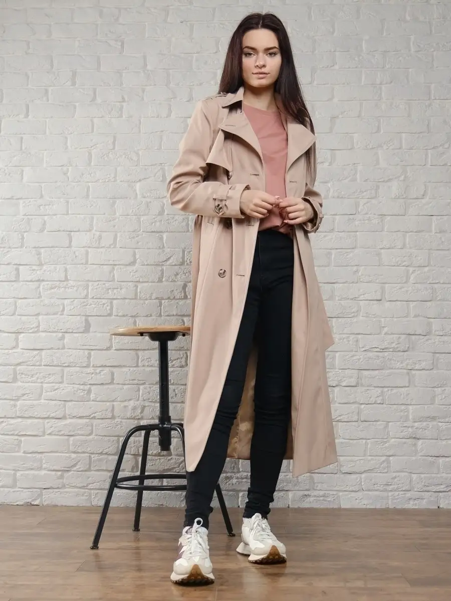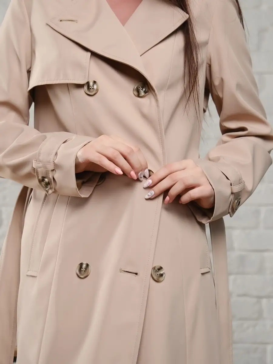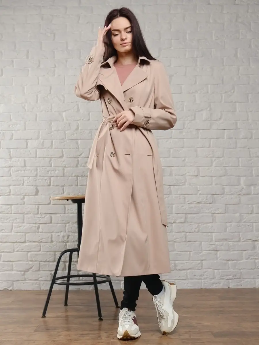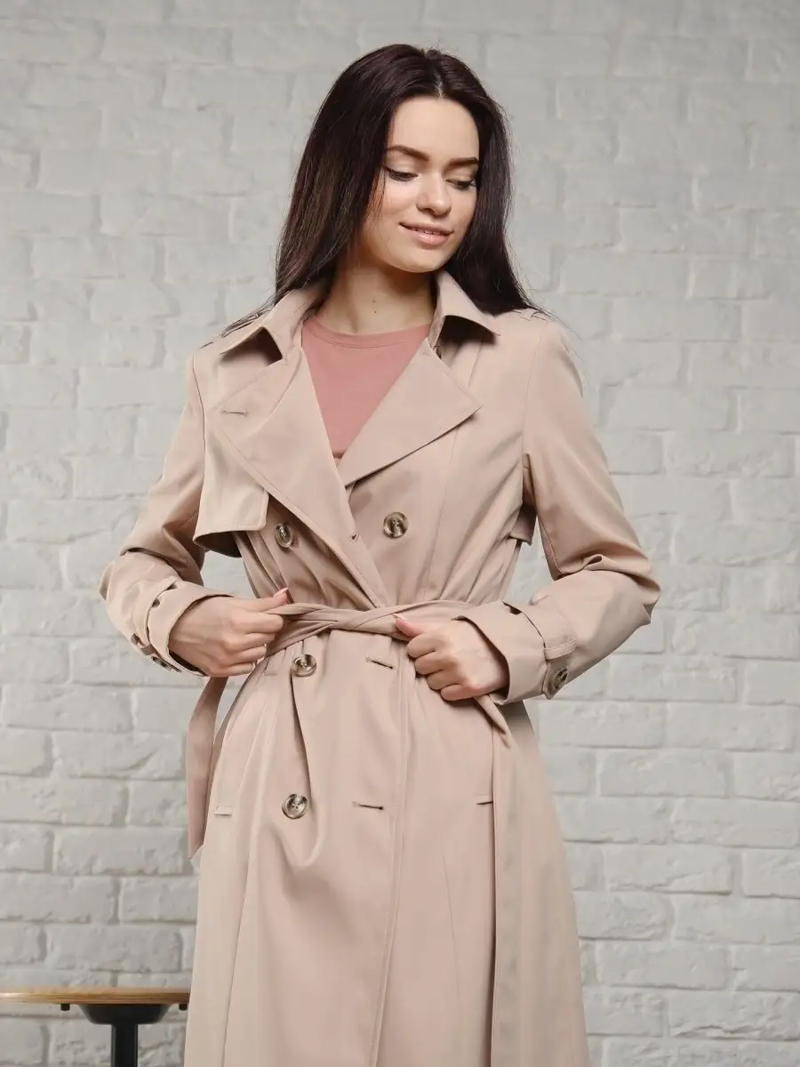Описание: РЕКОМЕНДУЕМ брать НА РАЗМЕР БОЛЬШЕ своего. Тренч женский – это классический тренчкот, который уже стал неотъемлемой частью базового гардероба на весну. Длинный плащ с поясом и полуприлегающей посадкой волшебно подчеркивает фигуру и создает актуальный современный образ. Длина миди, по спинке 116 см. Тренчкот женский из плащевой ткани не промокает в дождь и защитит вас от ветра благодаря особой водоотталкивающей пропитке материала. Двубортный тренчкот - это отличный выбор для динамичного образа жизни девушек, которые ценят комфорт, качество и стиль! Детали: Классический английский воротник. Крой прямой полуприлегающий. Двубортная застежка с двумя рядами пуговиц. Прямой втачной рукав. Шлица. Кокетка, погоны, паты на рукавах, шлевки под пояс. Прорезные карманы с листочкой. Ростовка рассчитана на рост 164 см. Материал - плащевая ткань (полиэстер 100%), непромокаемый, есть ветрозащита. Сезон: теплая весна от +10+15 градусов и прохладное лето.