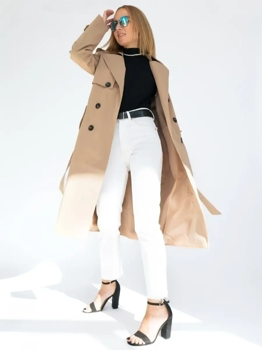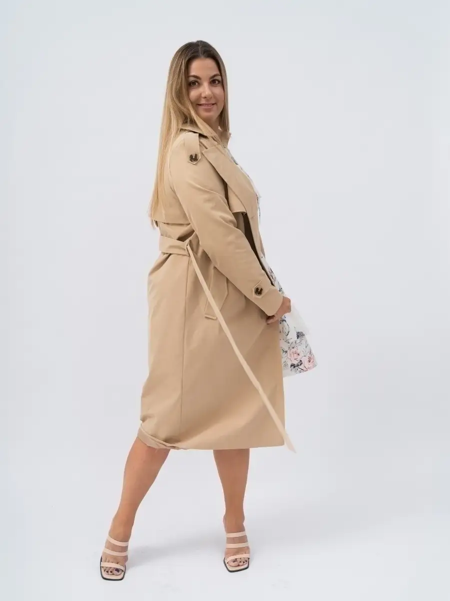Описание: Цвет фурнитуры может отличаться от фото. Женский плащ весенний, тренчкот - беспроигрышный вариант, который подружится с классическим стилем и спортивным. Он просто незаменим в сезон осень, весна, но и на прохладный летний вечер будет идеален, универсален для сочетания с любыми предметами гардероба. Тренч классический длинный двубортный не стеганый - базовый предмет гардероба осенне-весеннего сезона любой девушки. Классическая длина не короткий, на подкладе, но не утепленный, модель свободного фасона с поясом на талии и двубортной застежкой. Осенний тренч выполнен в самых трендовых расцветках Весна Осень 2023 : бежевый, черный, песочный, хаки, фисташковый, терракотовый, травяной зелёный, кэмел или кемел, топленое молоко, кремовый, карамельный, зелено-серый, слоновая кость, светло-бежевый, пудровый и темно-бежевый. Осталось выбрать цвет. Пальто весеннее можно носить южной зимой с тёплой кофтой или свитером. При желании полупальто можно носить как Oversize или оверсайз, рекомендуем брать на 1-2 размера больше. Станьте такой же яркой и слегка эпатажной, как один из самых знаменитых певцов прошлого века, Майкл Джексон, повторяя его один из ярких образов в клипе песни Free. #BeMichaelJacksn #BeFree. Размерный ряд имеет большие размеры: 42, 44, 46, 48, 50, 52, 54. Плащ для женщин это легкая верхняя одежда которая способна заменить легкое пальто, толстовку и кожаную куртку, джинсовку, пиджак. Тренч демисезонный подойдет для беременных, полных женщин plus size. Просто классика без лишних деталей. Вы также можете присмотреть себе верхнюю женскую одежду на любой сезон - зима, осень, весна и лето: шерстяное или драповое пальто, пальто халат, куртку демисезонную, пуховик зимний, косуху или ветровку в нашем магазине, нажав на логотип VIO design.