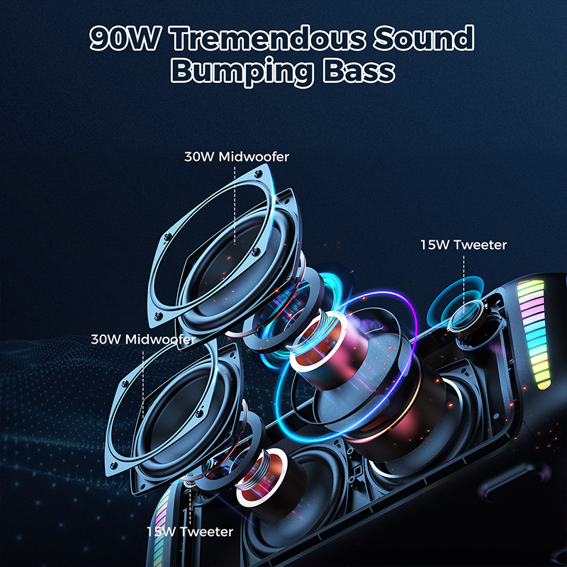 Tribit Портативный Bluetooth динамик 90 Вт Мощный Power StormBox Blast IPX7 Водонепроницаемый Открытый Party Camping Беспроводной динамик 30-часовая игра с AUX входом