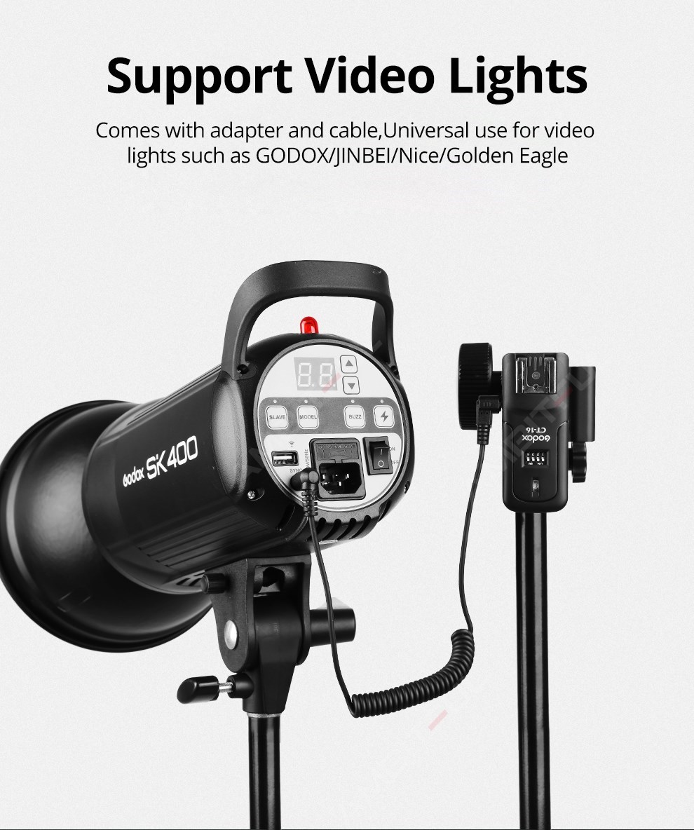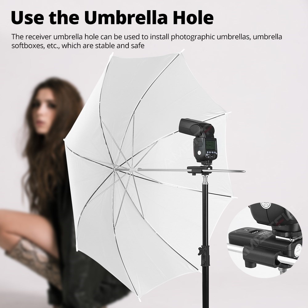 С помощью этого триггера вы можете запускать как flashgun, так и studio lights. Если вы используете ресивер на большом студийном стробоскопическом фонарике или раме переменного тока, вы можете просто подключите приемник к студийный стробоскоп фонарик с 3,5 мм или 6,35 мм разъем для синхронизации ПК (не прилагаются).