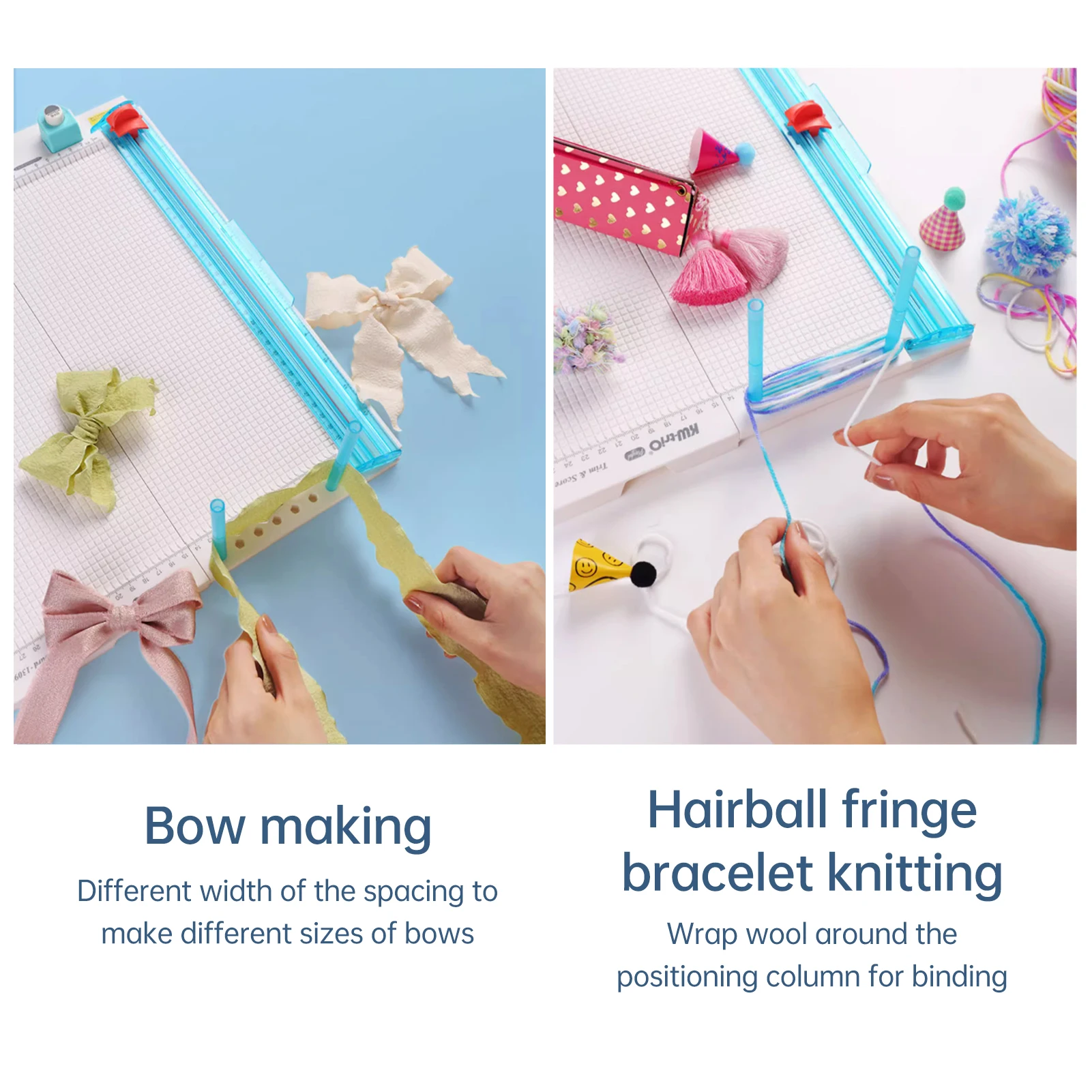 Универсальный дизайн 7 в 1: этот триммер для бумаги предназначен для выполнения 7 различных функций, включая штамповку полукругов, пробивку отверстий, надрезание, резку бумаги и создание помпонов/кисточек, и т. д.
